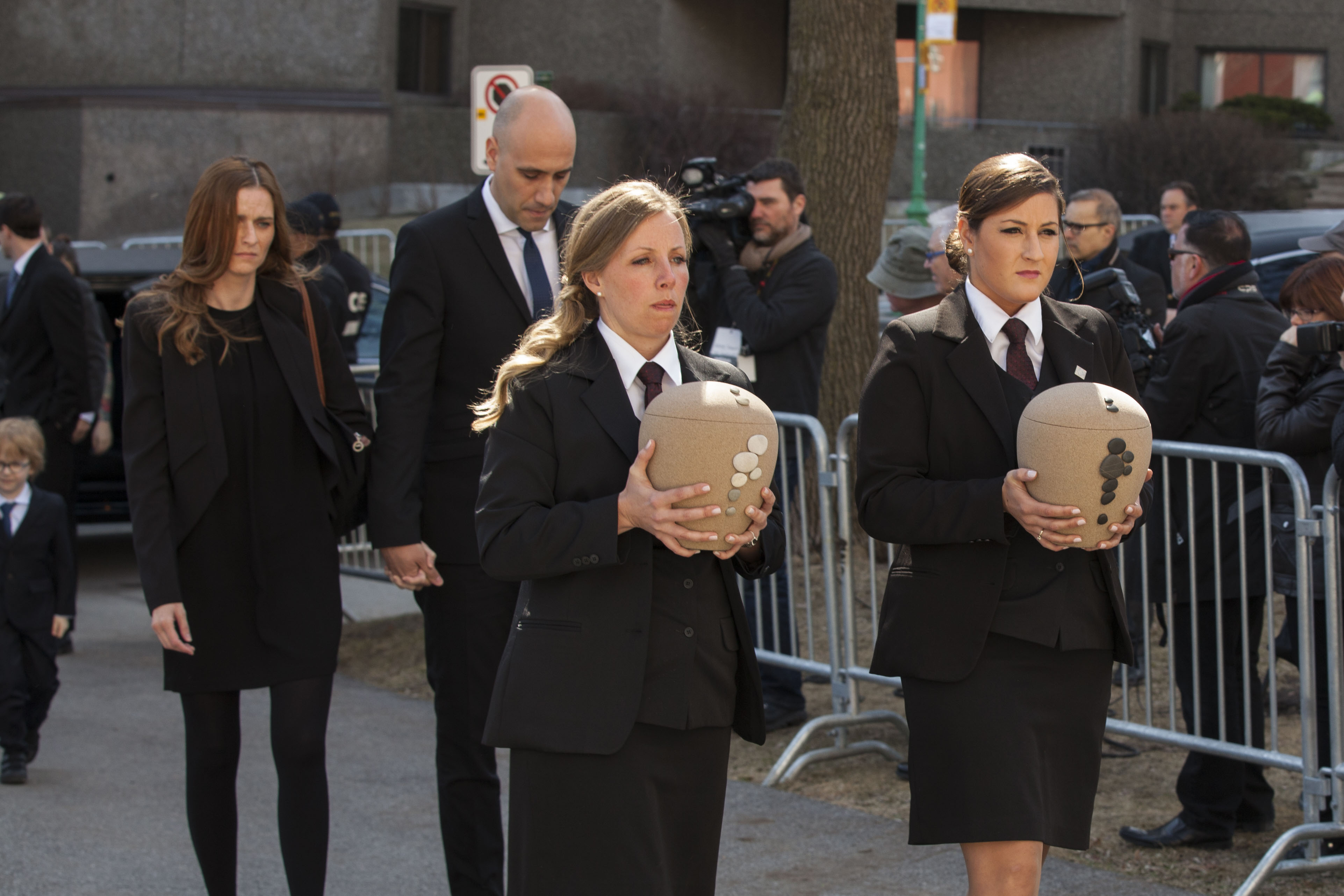 Le cortège funèbre a fait son entrée sur les coups de 11h, mené par les enfants du couple, Marie-Anne et Jean-Michel Lapierre, dans un silence solennel.
