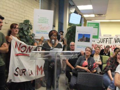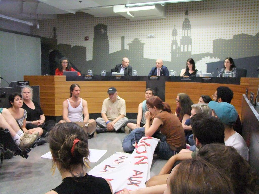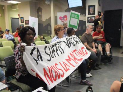 Des citoyens ont pris d’assaut la mairie de l’arrondissement, lundi soir, afin qu’un projet de logements sociaux soit construit sur le terrain de la Canada Malting. Photo: Photo: Voix Pop-Annie Bourque