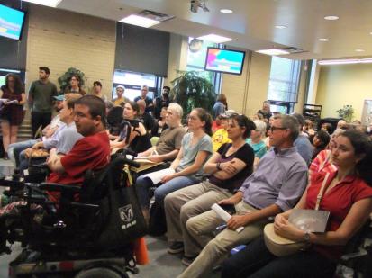 Une salle bondée de citoyens, lundi soir.