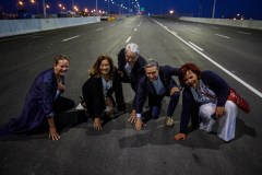 Pour des raisons de fluidité, les ingénieurs ont décidé d’ouvrir le pont en deux temps, puisqu’il faut fermer les accès afin de terminer les raccordements. Les équipes ont mis la touche finale quelques minutes avant l’ouverture pour s’assurer que la chaussée imperméabilisée soit sécuritaire et libre de tout débris.
