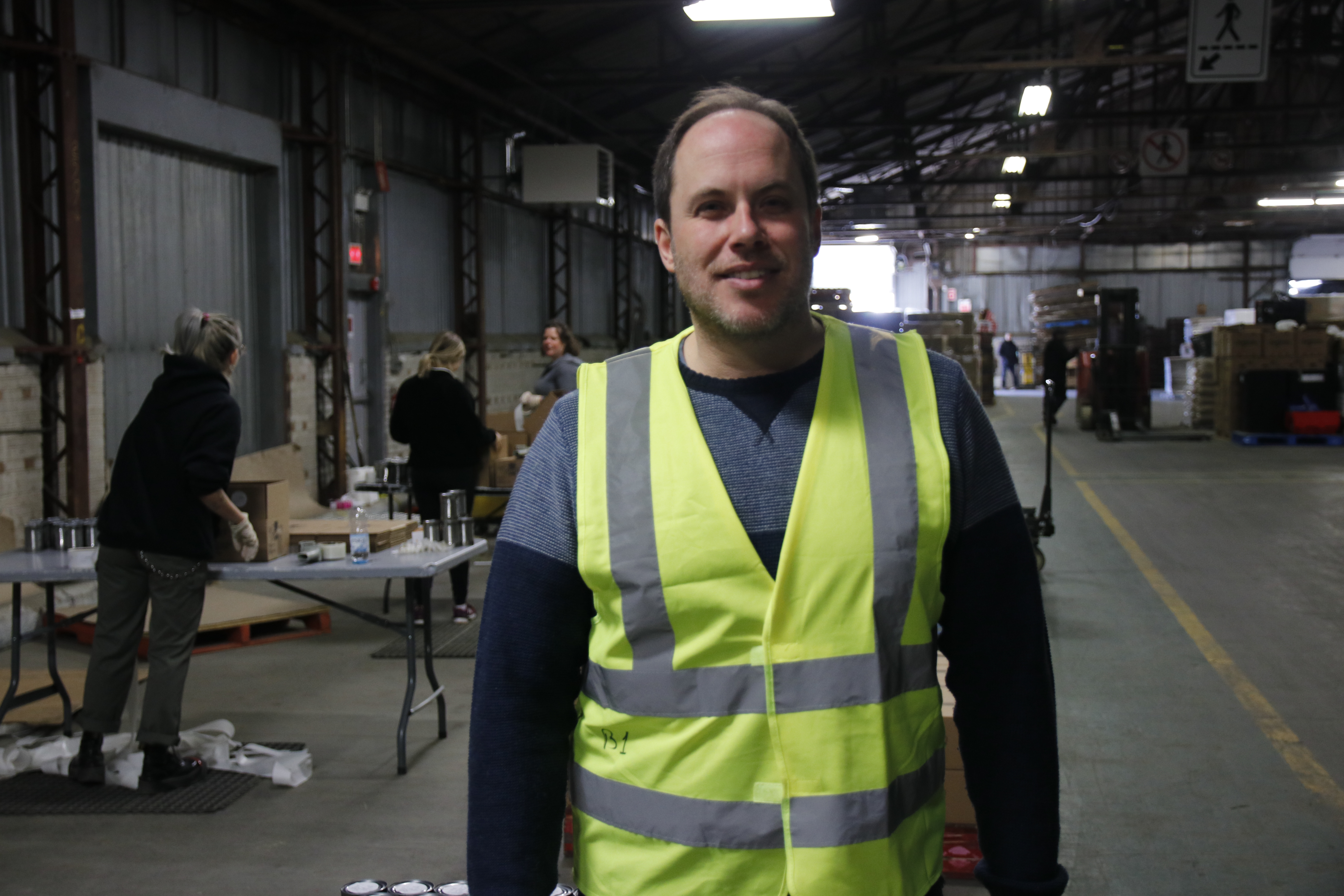 «On vient donner du temps, tant qu’à rester chez nous à attendre les consignes», dit-il, en transférant des canettes d’une palette à une autre.