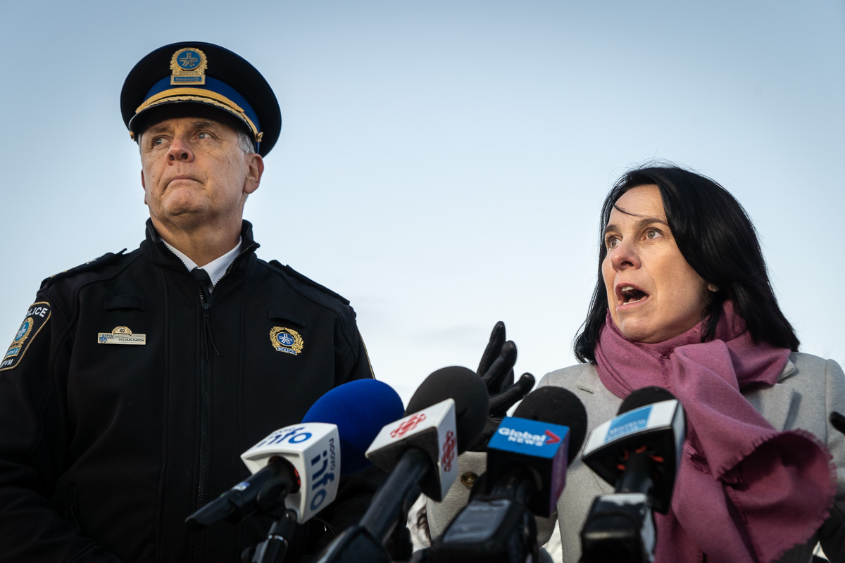 La mairesse de Montréal, Valérie Plante, et le directeur du SPVM, Sylvain Caron, ont déposé des fleurs à l’endroit où est mort par balle Thomas Trudel, un adolescent de 16 ans, dans l’arrondissement Villeray–Saint-Michel–Parc-Extension dimanche soir.