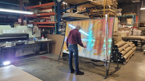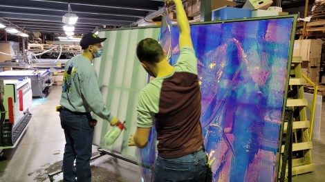 Pour l’accompagner au mieux dans ce projet faramineux, l’équipe de Show Canada a donc fait appel à l’entreprise montréalaise d’habillage et d’impression grand format AMP Digital, qui, par son expertise en installation de vinyle dichroïque et en découpe numérique CNC, représentait le parfait collaborateur.