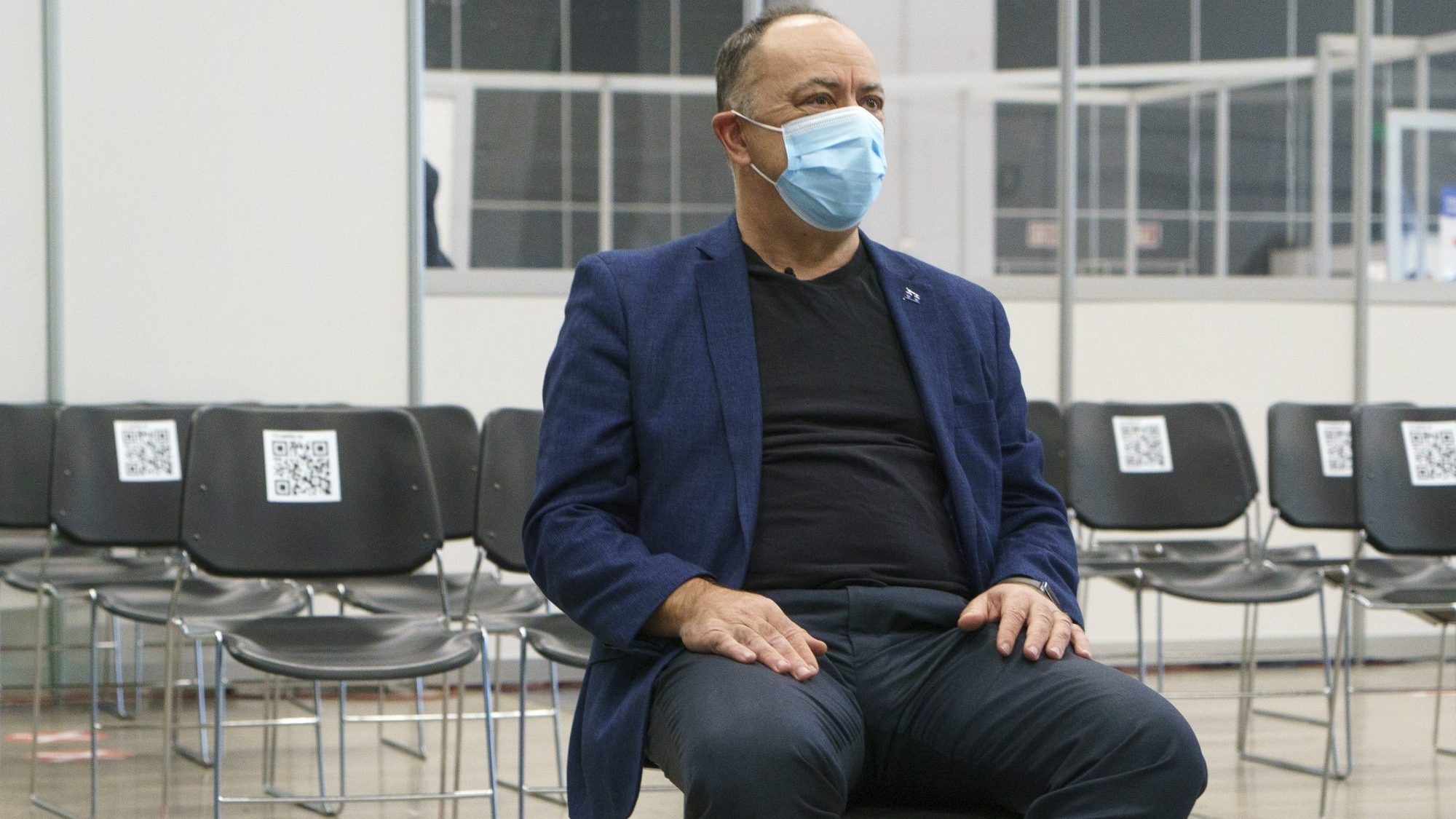 Le ministre Christian Dubé 15 minutes après avoir reçu sa dose du vaccin AstraZeneca le 18 mars. Photo: THE CANADIAN PRESS/Paul Chiasson