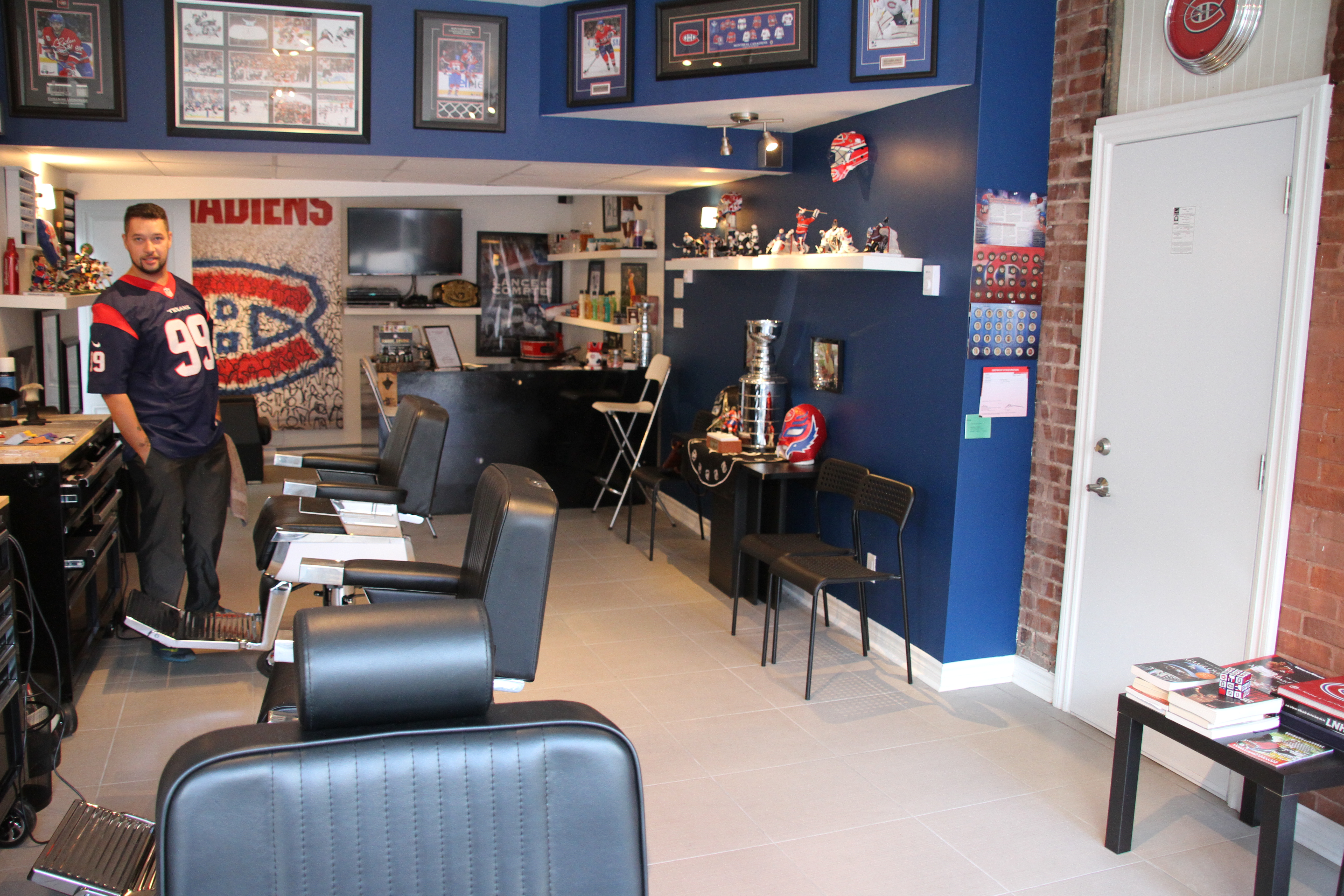 Les Verdunois peuvent se plonger le temps d’une coupe de cheveux dans un univers totalement sportif et plus masculin. Jonathan Frigon a aménagé son local pour faire en sorte que