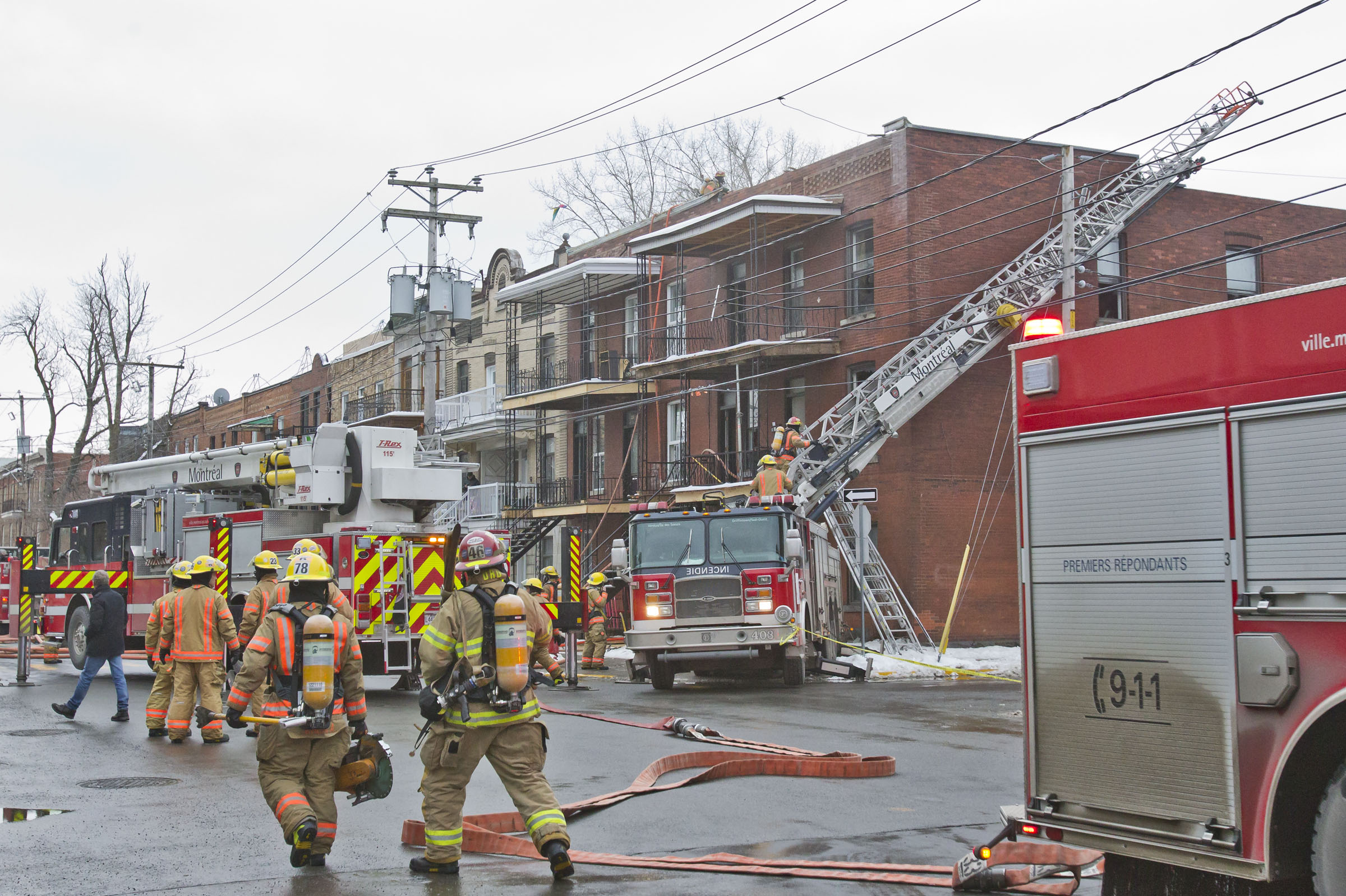 Un immeuble à logements situé sur le boulevard LaSalle près de la rue Rielle est la proie des flammes depuis 14h. Le Service sécurité incendie de Montréal répond à une