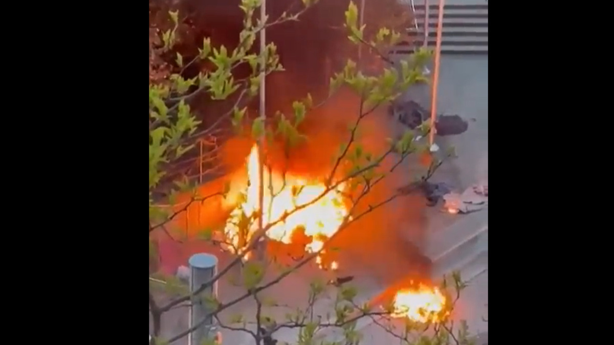 Un campement brûle derrière le complexe Guy-Favreau