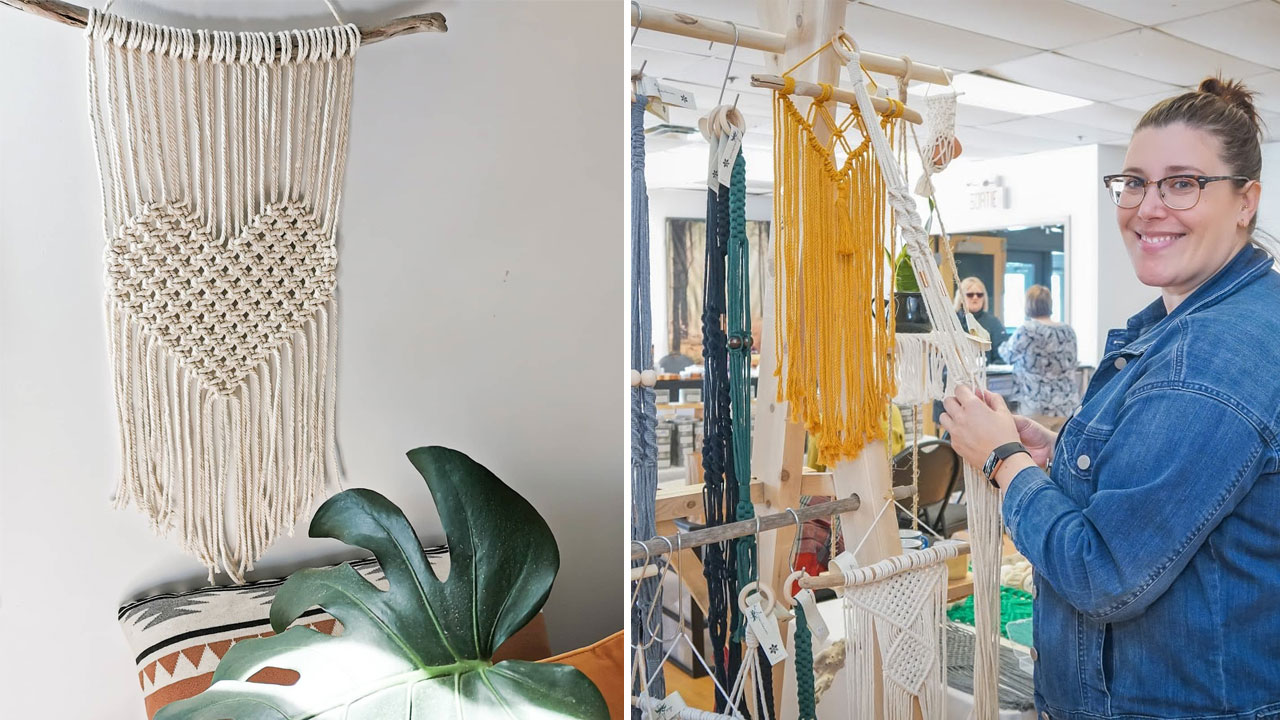 La petite entreprise québécoise Les Accrocheuses offre des ateliers d’initiation au macramé via vidéoconférence. Il s’agit de cours pour débutant qui durent 2 heures et qui incluent tout le matériel