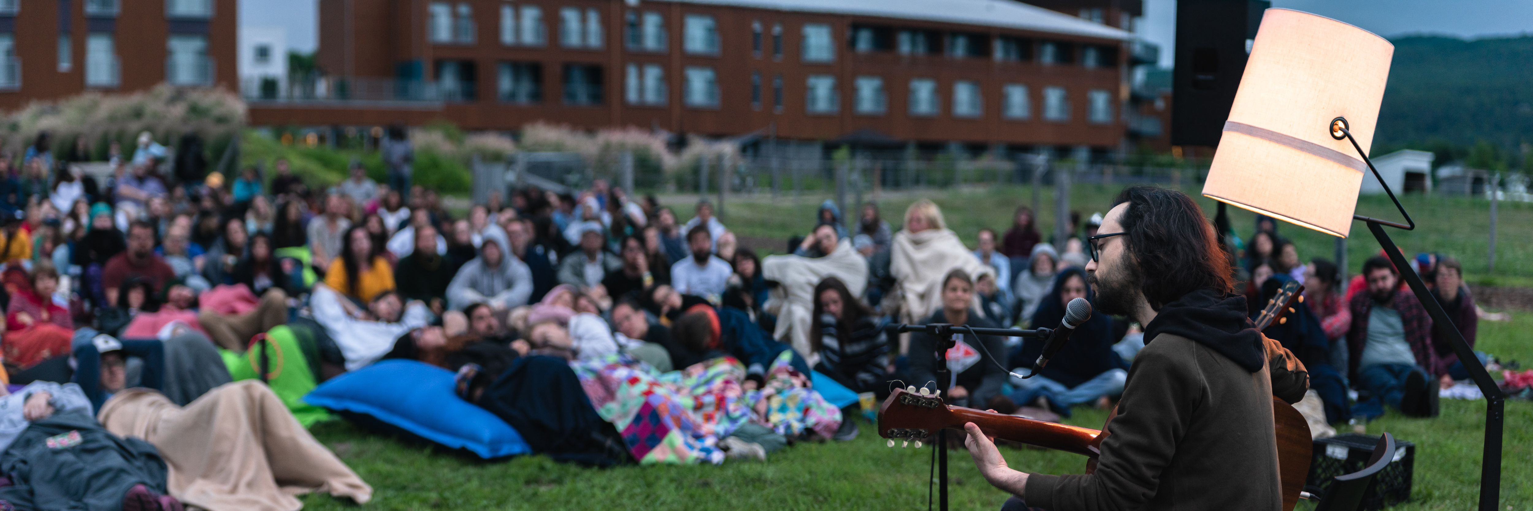 Seul à la guitare, il a interprété ses berceuses, choisies à la fois pour apaiser les fêtards éméchés et réveiller le public qui venait de se lever. Un moment contemplatif et surréaliste, entre la nuit et le jour, entre le sommeil et l’éveil.