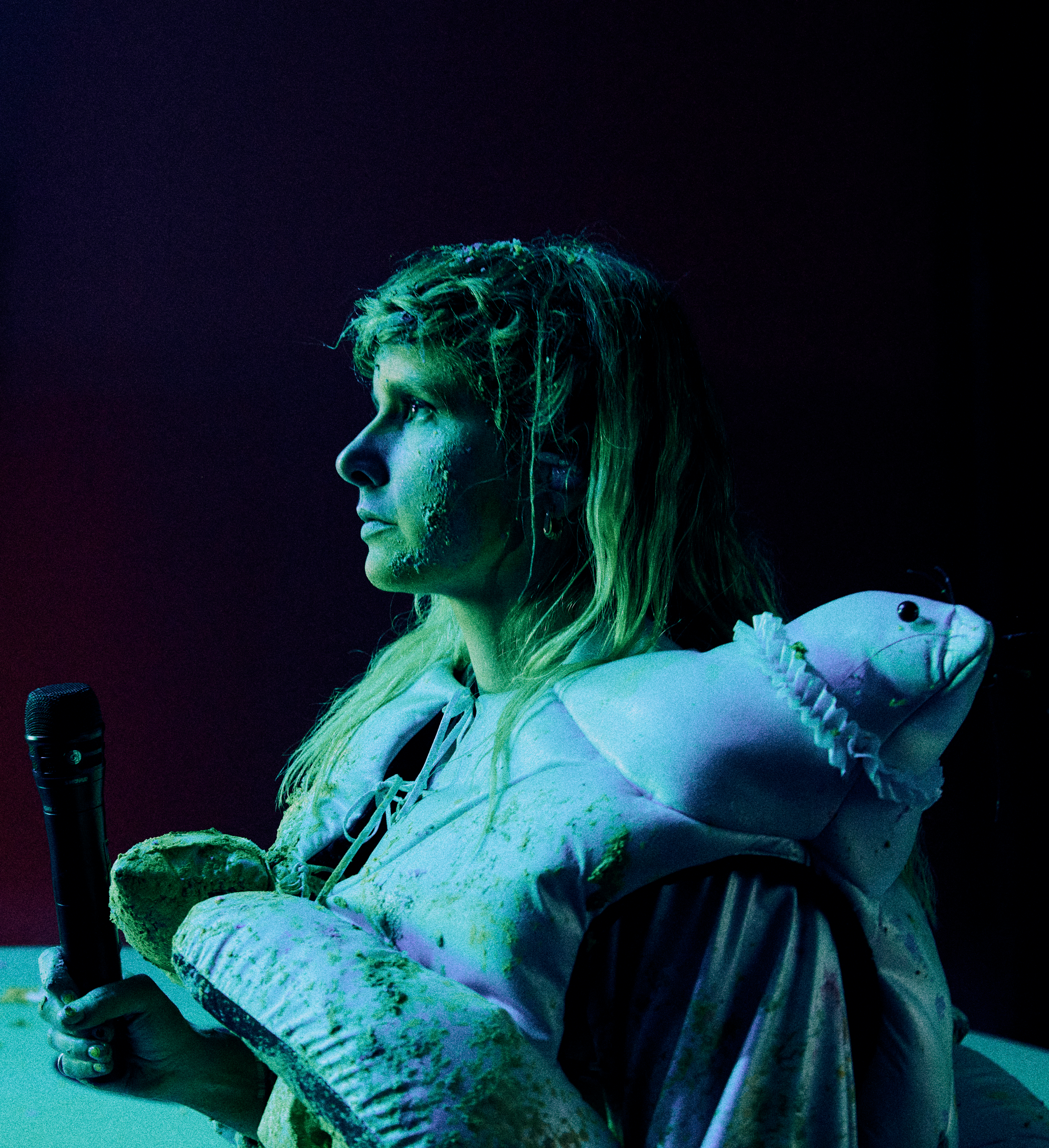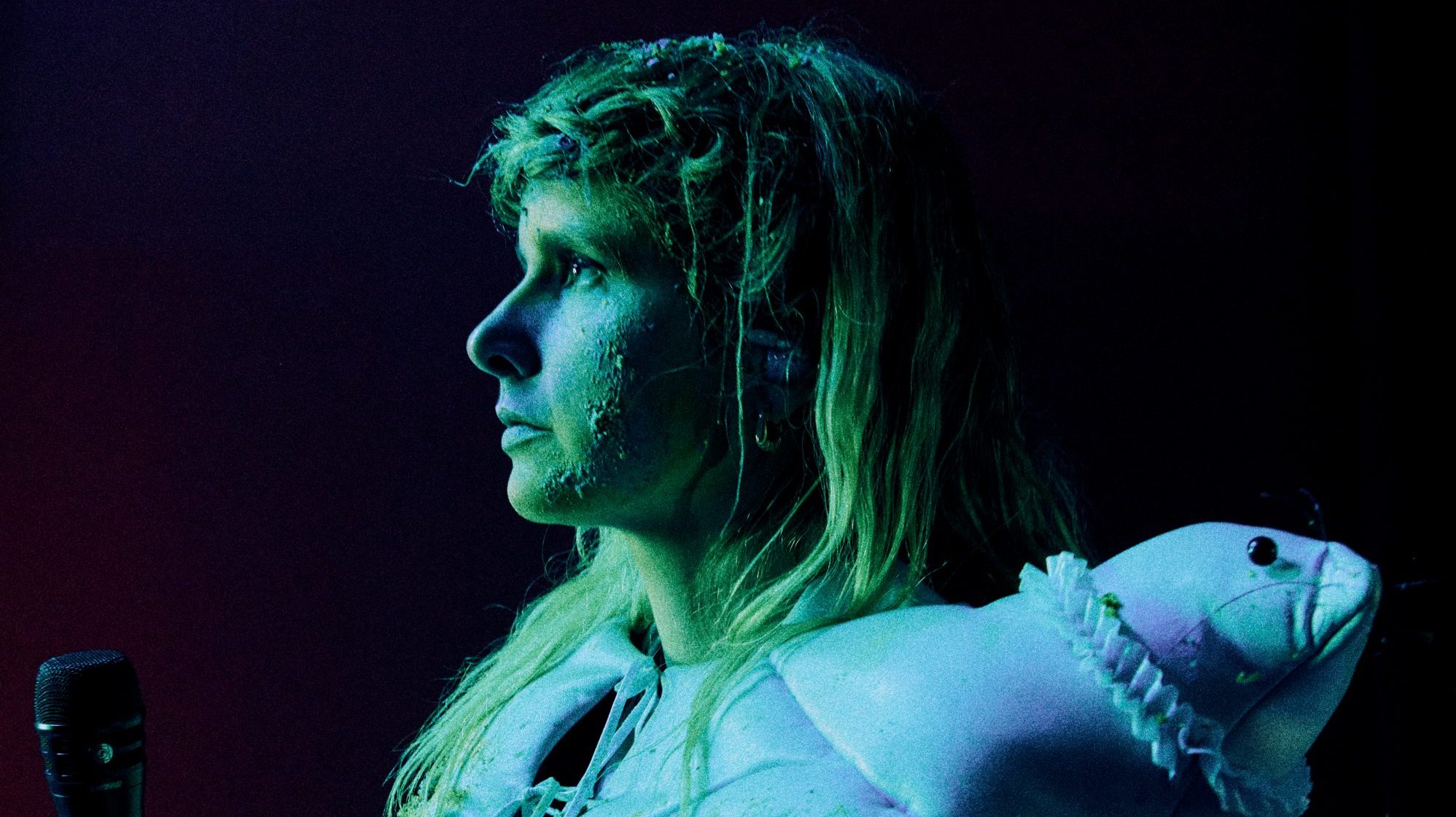 À défaut d’avoir pu présenter sur scène son extraordinaire album Notre-Dame-des-Sept-Douleurs sorti en juin dernier, la flamboyante artiste s’est payé un trip visuel et sonore réalisé par Laurence «Baz» Morais. Dans ce coloré «spectacle spectral», il y a du poulet frit, le jeu du parachute, de la pluie, un gâteau de fête et des combinaisons Hazmat. Surtout, il y a l’énergie punk de Klô Pelgag. Entourée de musiciens et choristes en pleine forme, elle saute, court et même vole en chantant toujours parfaitement.