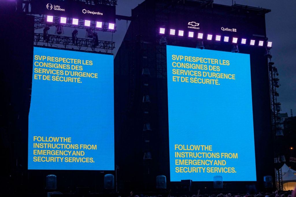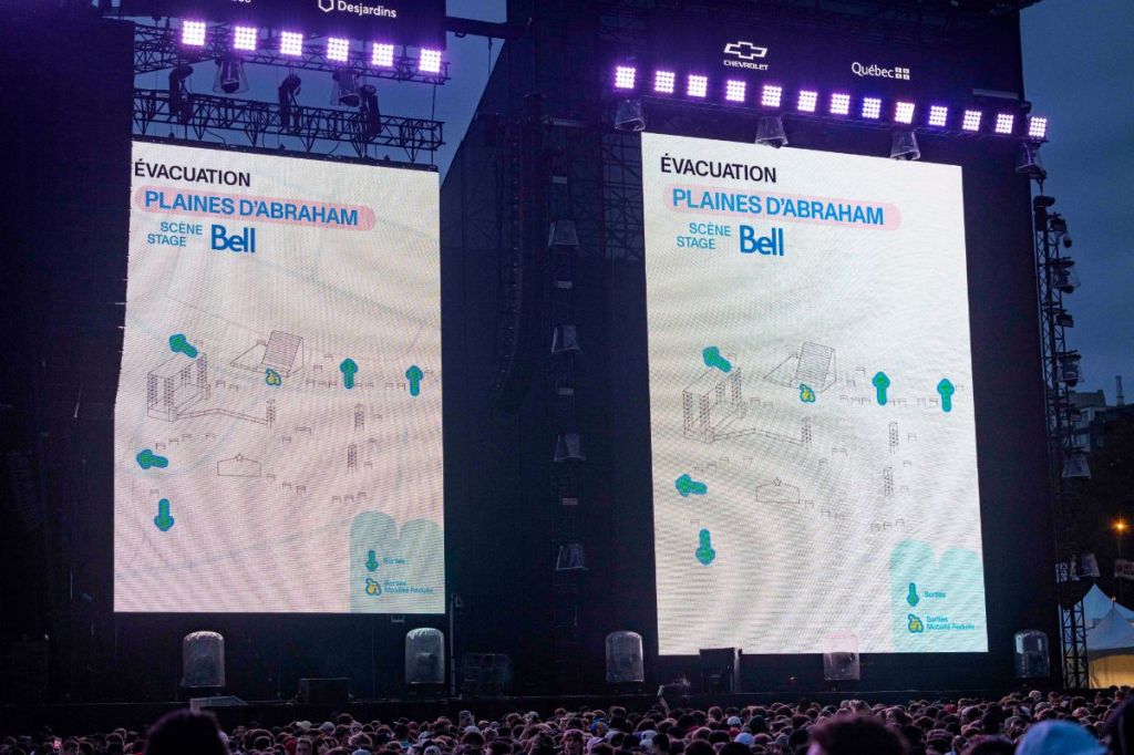 L’ensemble des sites de l’événement a dû être évacué sur le coup de 20h45, avant même l’arrivée de l’orage. Sur les Plaines d’Abraham, c’est le rappeur canadien Bbno$ qui a annoncé la nouvelle aux festivaliers après avoir vu son programme être devancé de quelques minutes pour lui permettre de jouer quelques chansons.