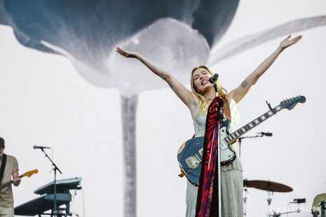 Accompagnée notamment par deux choristes, elle a livré, entre autres, des reprises de Somewhere Only We Know et Thank You en plus de ses titres Feelings, La Di Da et Kissing Other People. Si sa performance était musicalement impeccable et sa douce voix charmante, elle a toutefois limité ses interventions. Les spectateurs attentifs auront donc seulement appris qu’elle était déjà passée par Québec et qu’elle avait trouvé que ça ressemblait à l’Europe, et c’est à peu près tout.