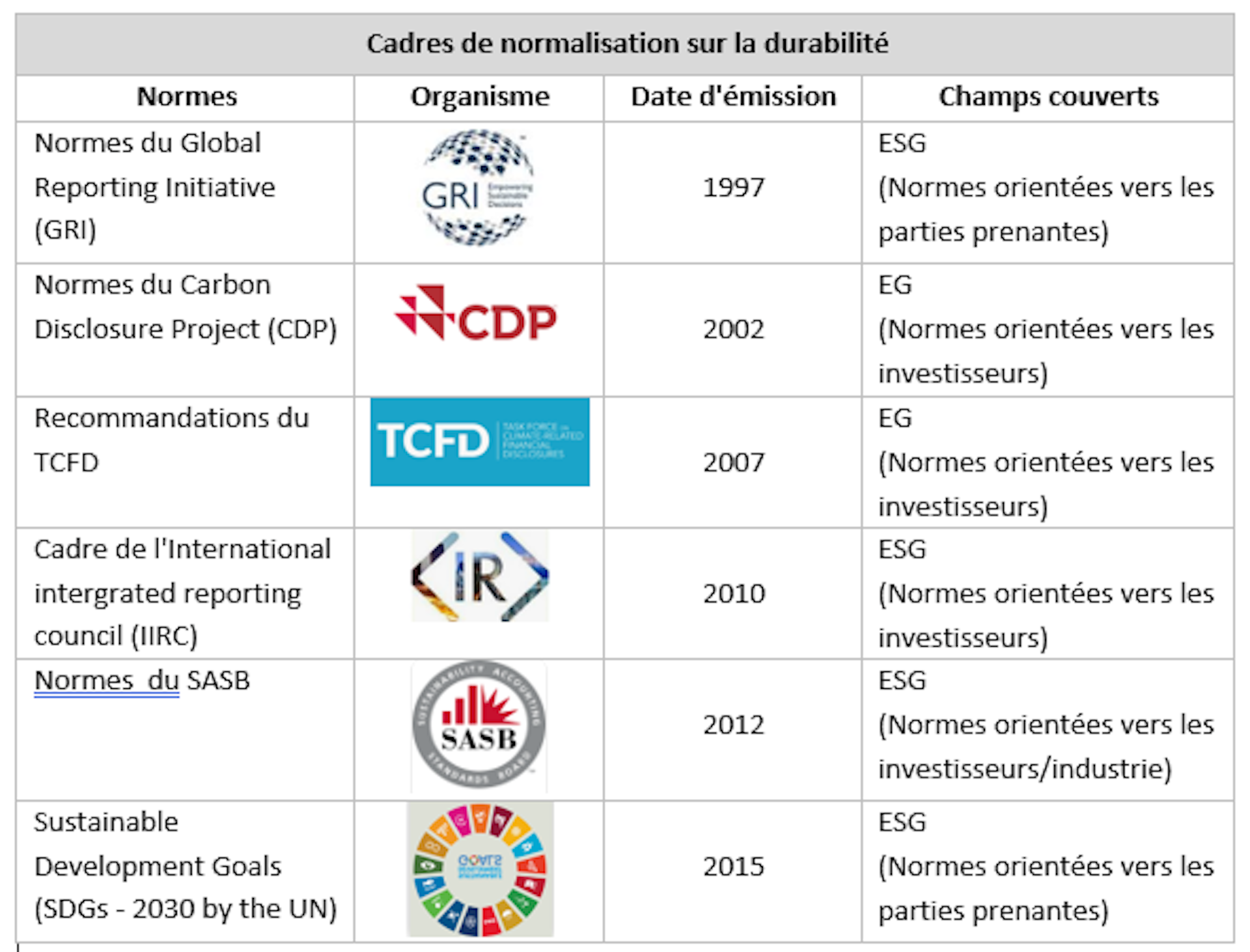 Cadres de normalisation sur la durabilité. auteurs