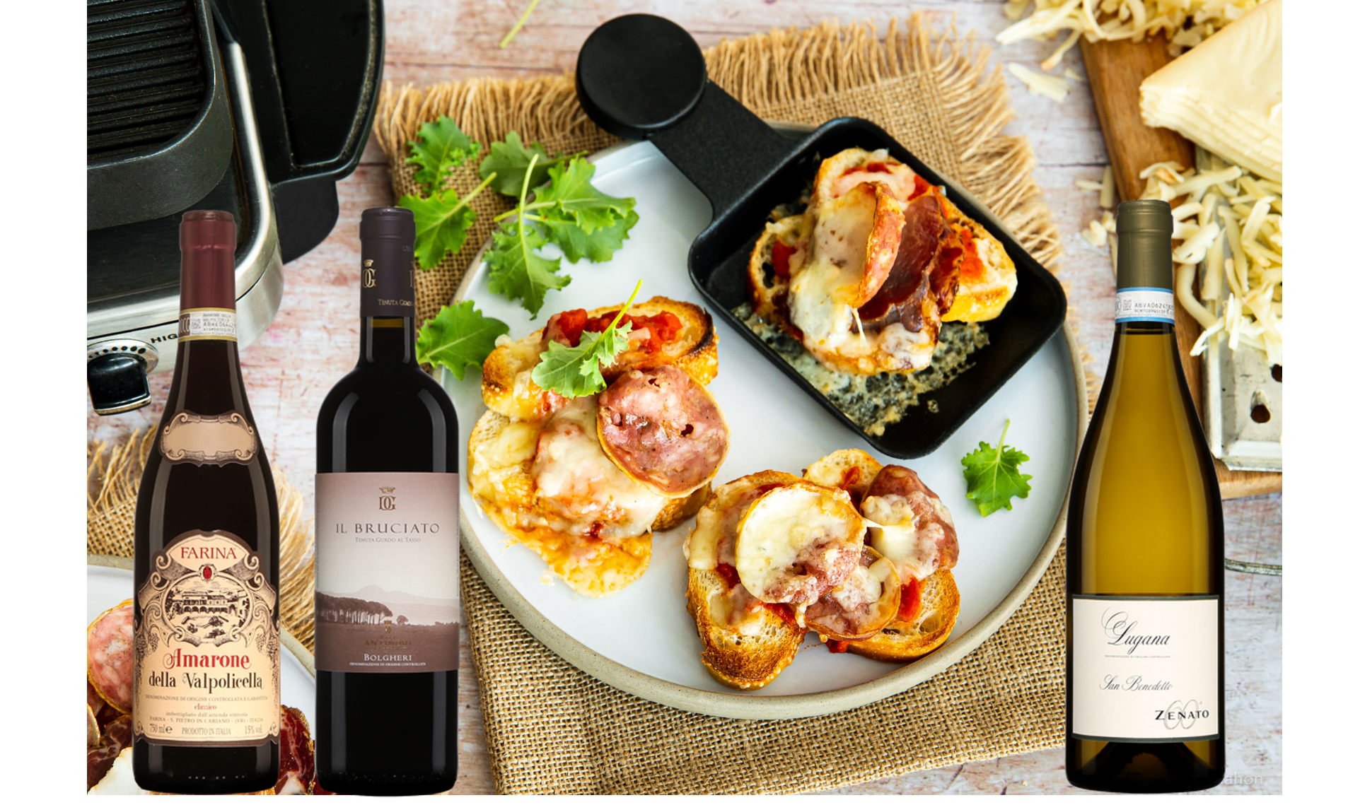 Qui dit raclette, dit fromage, mais aussi charcuteries et légumes. Cette fois, on vous propose une recette originale qui s’inspire des ingrédients d’une pizza (sauce tomates, charcuteries de qualité, fromage fondant) pour jazzer vos raclettes! Le choix de vin sera donc un peu différent de ceux proposés avec le traditionnel plat suisse. Et pourquoi pas des vins italiens pour rester dans la palette de cette pizza-raclette ? Voici 3 délicieuses suggestions!