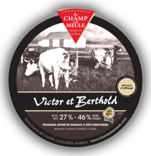 Porte-étendard de la Fromagerie Du Champ à la Meule, il est aujourd’hui reconnu comme étant l’un des fromages les plus appréciés au Québec. Sa pâte pressée non-cuite à croute lavée est faite de lait non-pasteurisé (thermisé). Le Victor et Berthold conjugue des arômes d’herbes, une saveur légèrement fruitée, un goût de beurre salé et une fine note d’acidité. Assurément un incontournable pour les amoureux de fromages!