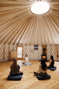 Une salle multifonctionnelle de près de 1 000 pieds carrés a été aménagée pour la tenue d’ateliers de groupe; une magnifique yourte en forêt est disponible pour des cours de yoga, méditation, Qi Gong et autres. En semaine, ces cours sont offerts gratuitement aux clients en location individuelle.