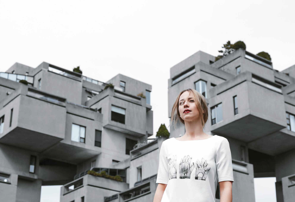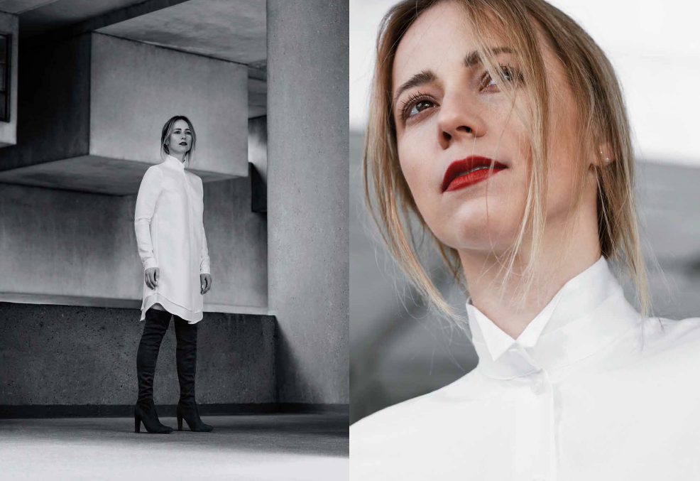 Mise en scène à Montréal, la campagne est aussi accrocheuse et met en valeur le côté architectural des vêtements d’Elisa C. Rossow.