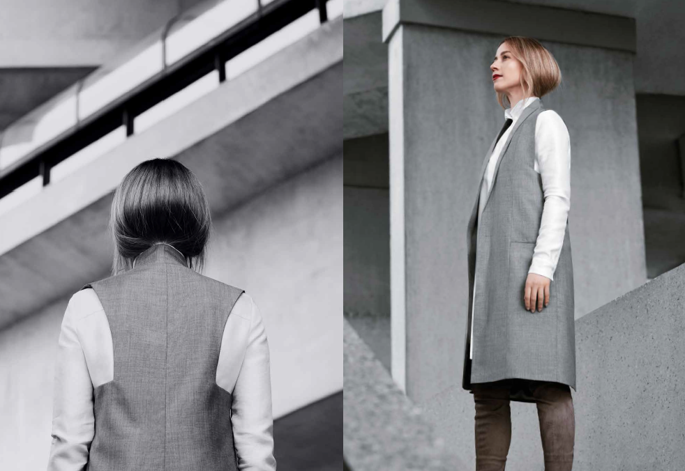 [Mise à jour]: La collection, dont les prix varient de 195$ à 1895$, sera entièrement confectionnée à la main à Montréal et compte un manteau en cachemire italien, deux vestes en mérinos et trois robes. Le manteau et les vestes seront fabriqués en seulement 20 exemplaires numérotés.