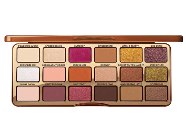 Cette palette de fards Gingerbread spice de Too Faced comporte 18 teintes chaudes à la finition scintillante. Leur parfum rappelle les pâtisseries de Noël.
