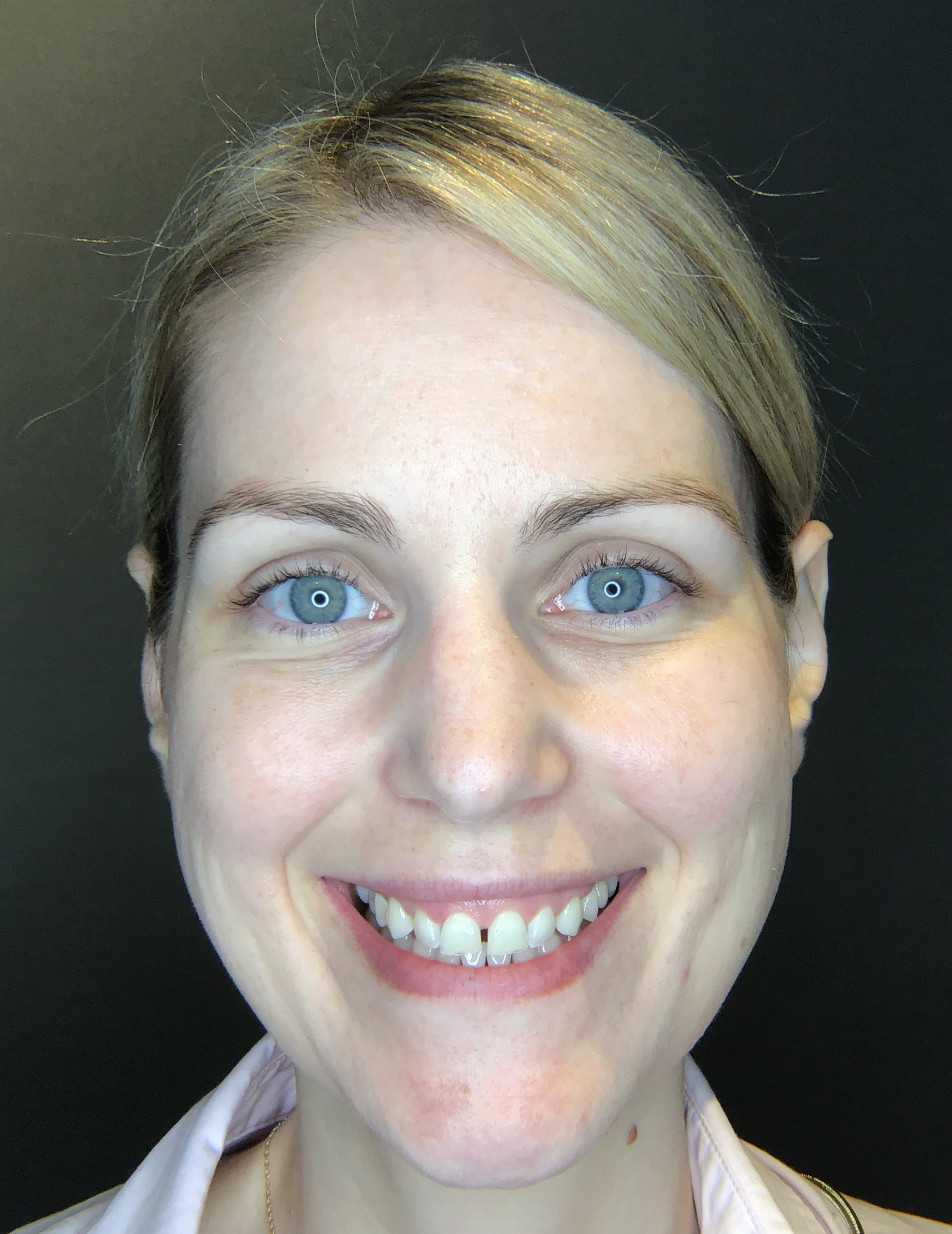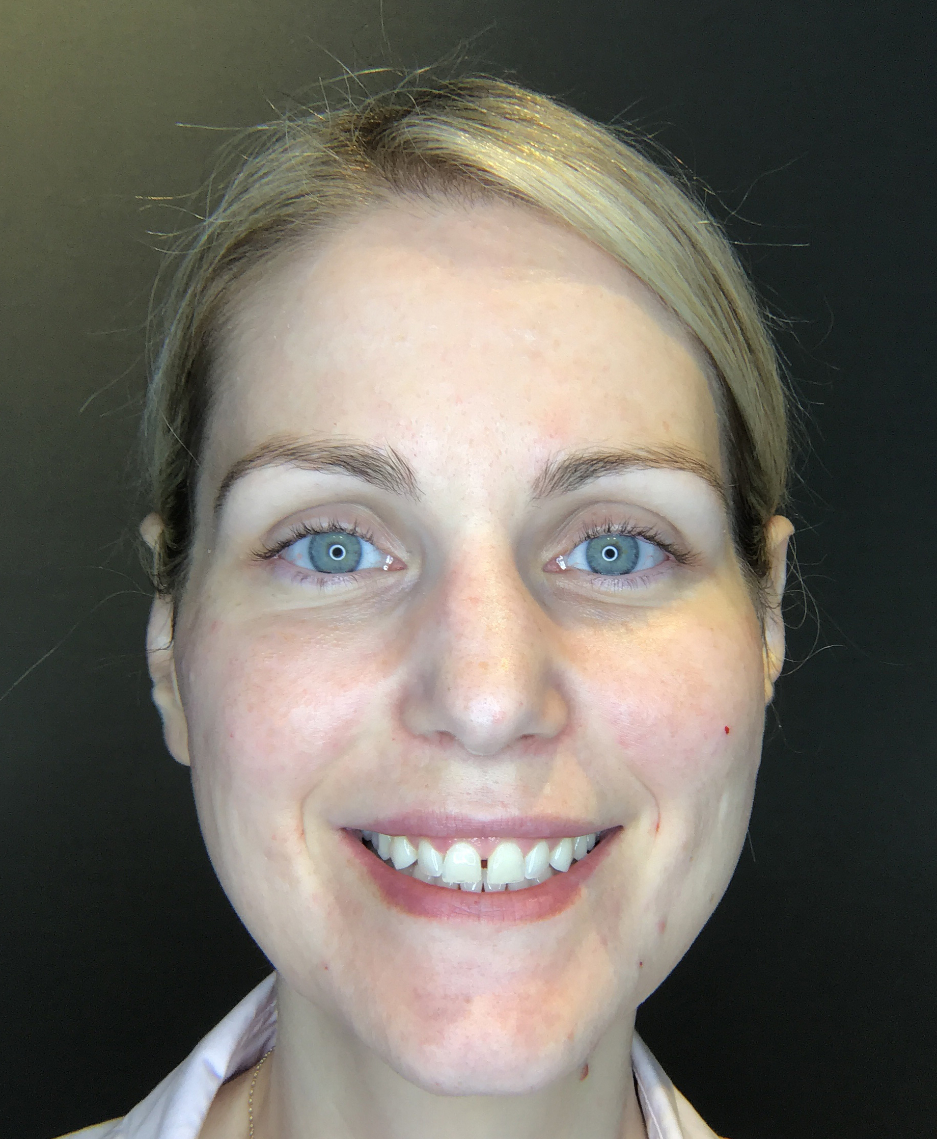 Après une deuxième prise de photos, Dre Dagenais me reçut à nouveau dans sa salle de traitement afin de faire le point sur l’état de ma bouche. Ce qu’elle y constate, c’est qu’à la mobilisation, une petite asymétrie se remarque. Selon elle, cela pouvait être causé par la diffusion d’une partie du neuromodulateur injecté pour corriger le sourire gingival. J’avais aussi remarqué que ma lèvre supérieure disparaissait en souriant.