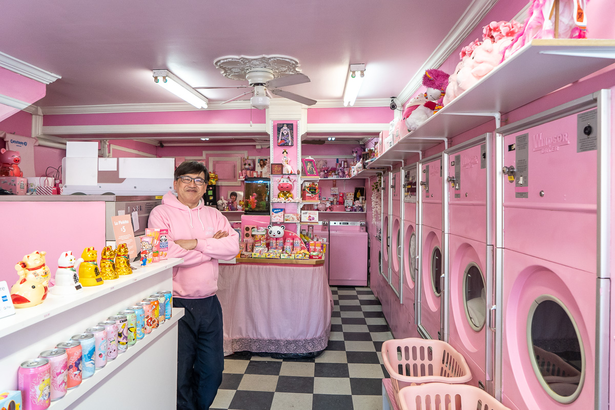 Chez Pinkita se distingue des autres cafés-buanderies. À vrai dire, l’établissement se distingue tout court, et ce, même à travers le monde. En plus d’offrir aux clients de donner un coup de propre à leurs t-shirts, il fait office de musée du rose. Tout, tout, tout y est rose. Même les boissons qui y sont servies.