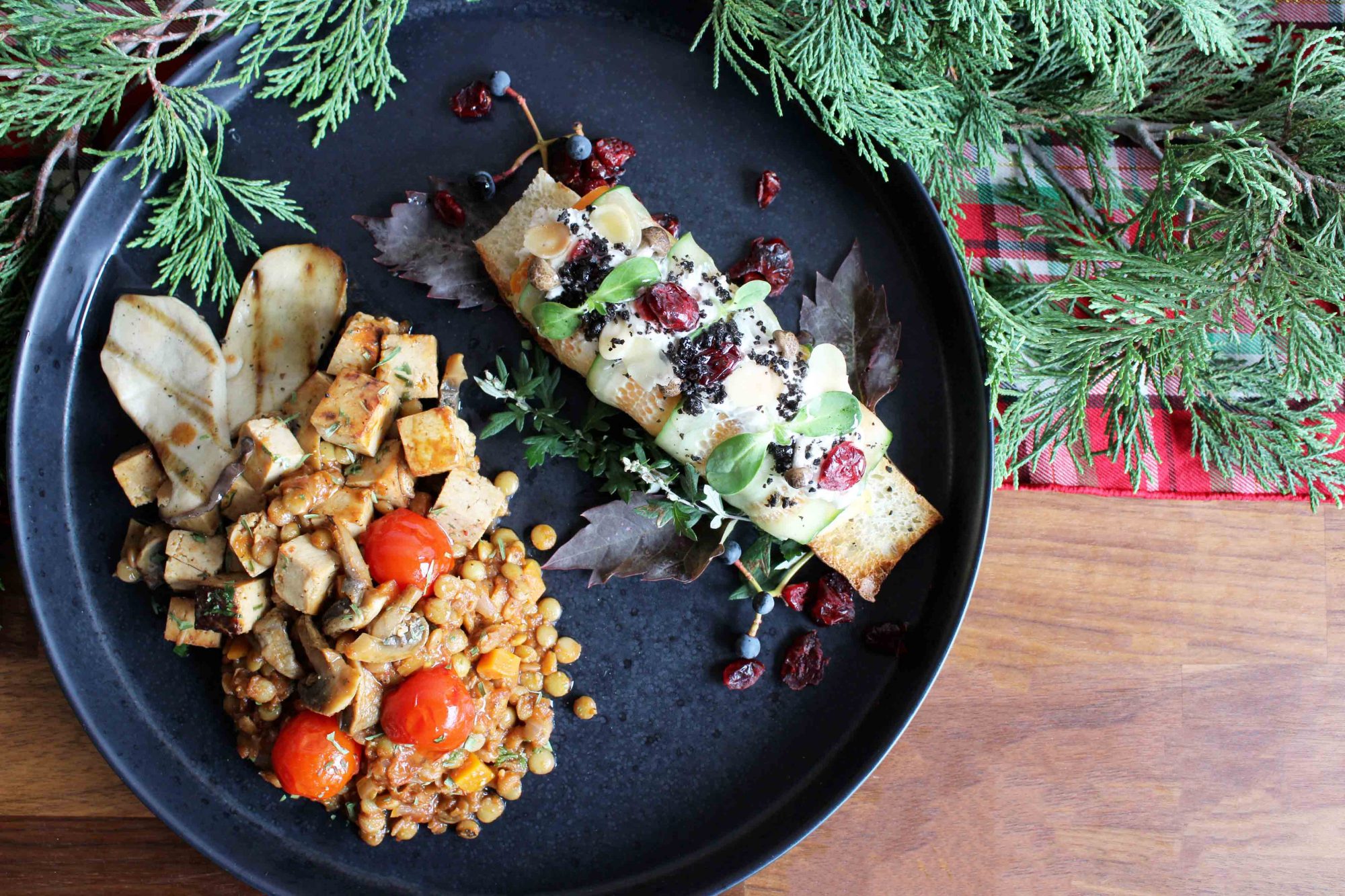 - Option végane: Sauté de tofu mariné au sirop d’érable et à l’orange, sauté de champignons King Oyster et son classique ragout de lentilles.