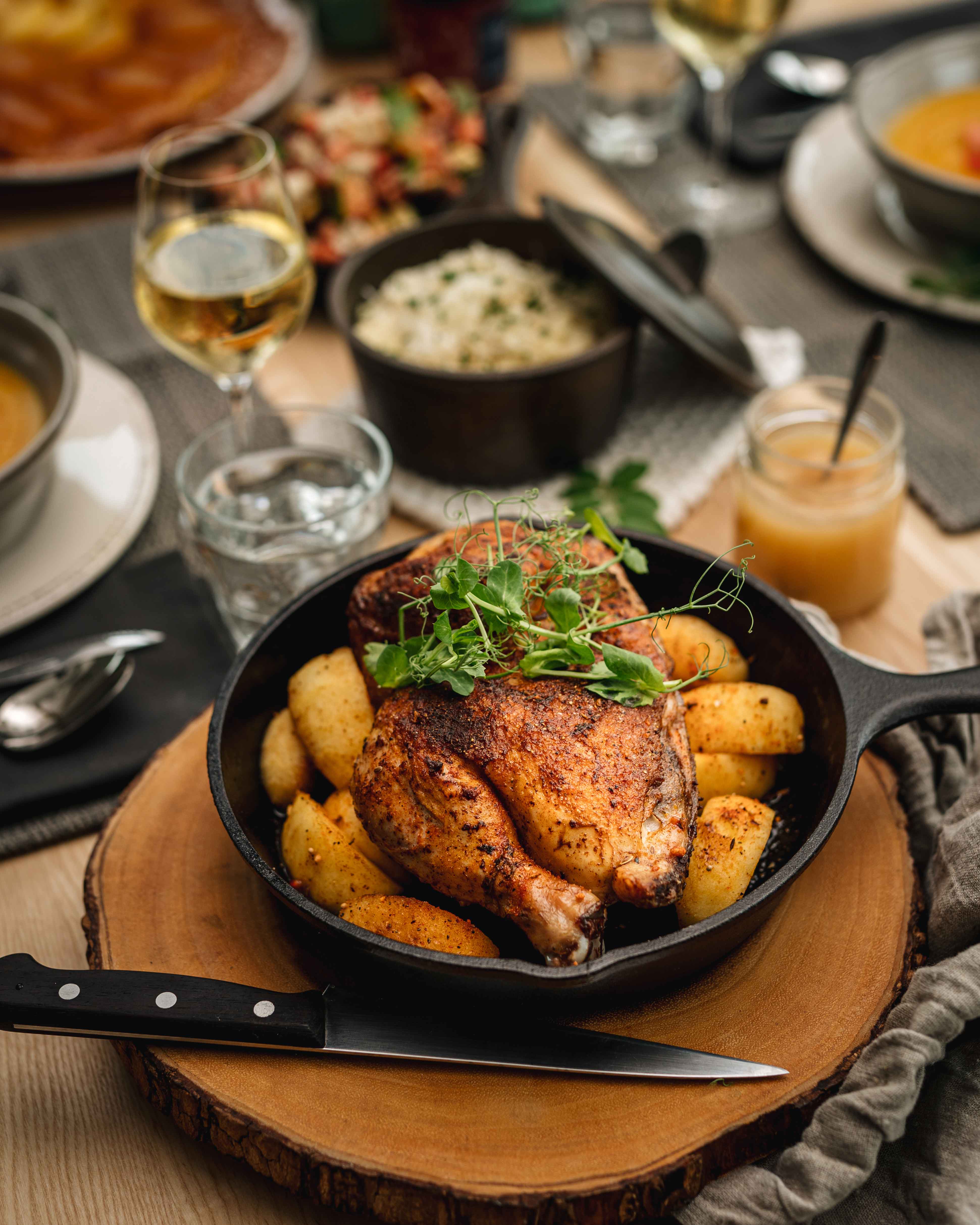 - ½ poulet saumuré, emballé sous vide, déjà cuit