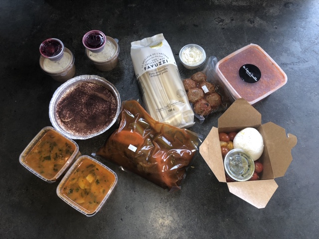 Afin de simplifier davantage l’organisation des repas de semaine, l’équipe de prêt à table propose des boîtes de 5 repas pour deux personnes au coût de 105$. La boîte change chaque semaine pour plus de variété.