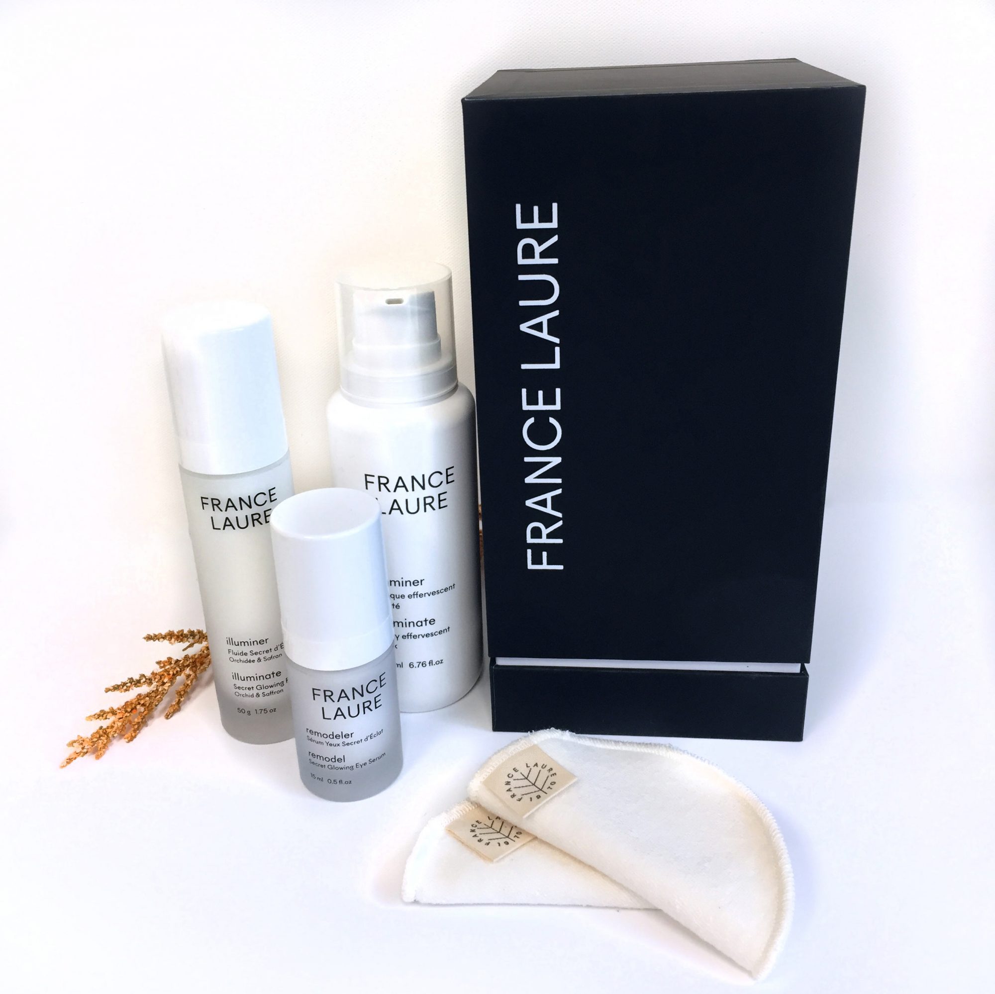 France Laure est une entreprise montréalaise spécialisée dans les cosmétiques haut de gamme utilisés en institut. Sa boîte «Secret d’Éclat» comporte un fluide illuminateur aux fragrances délicates de safran et d’orchidée, un contour de l’œil aussi frais que léger et un masque purifiant effervescent.