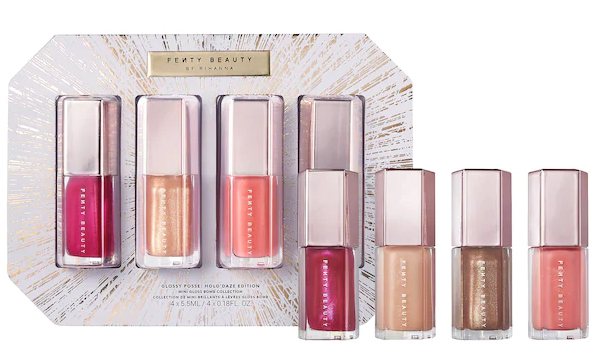 Les coffrets cadeaux en mini formats de Fenty Beauty incluent de nouvelles nuances de brillants à lèvres et de rouges à lèvres.