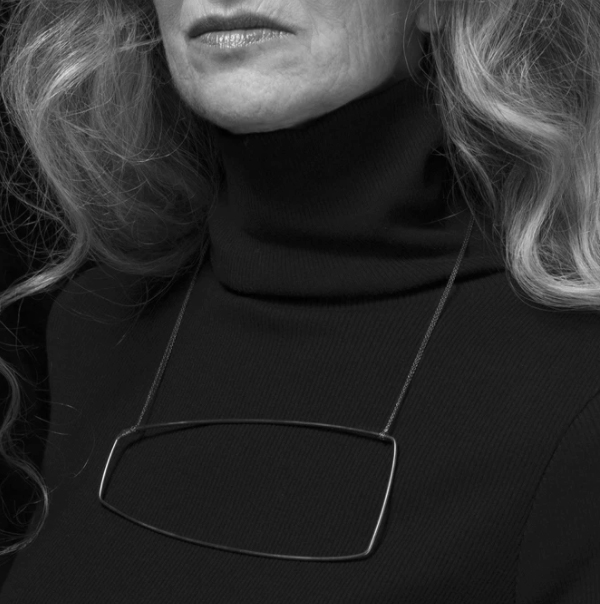 Gabrielle Desmarais est la designer-fondatrice de la gamme de bijoux éponyme. Ces pièces sculpturales sont uniques, dont le collier NK2. Issu de la collection ARCHITECTES, il est fait à la main en argent sterling oxydé (noir). Ce modèle est constitué d’un élément rectangulaire grand format monté sur deux chaînes ayant un fermoir signature. Parfait pour la femme qui ose!