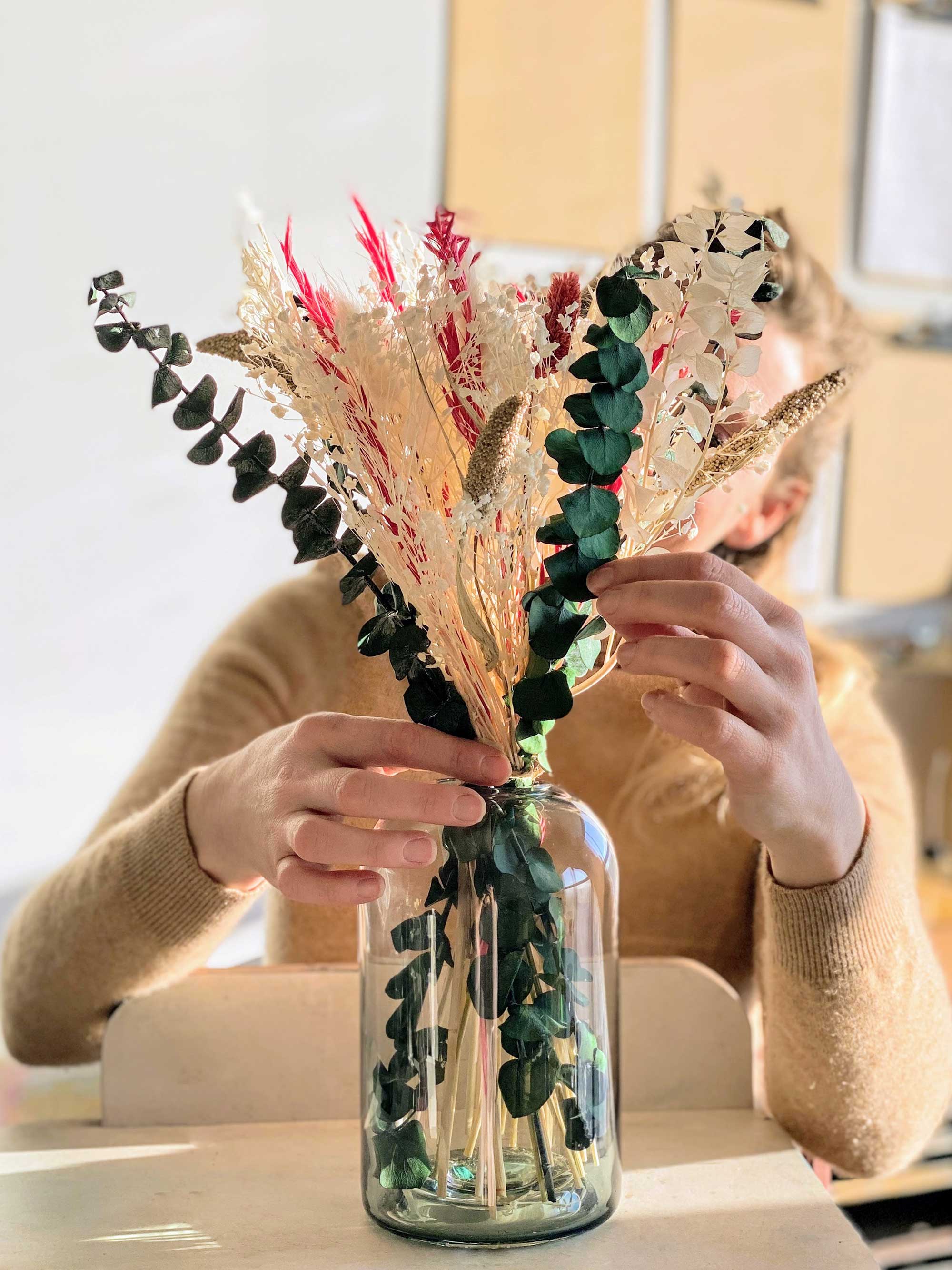 Or, faire venir de loin une fleur fraîche qui durera une semaine à l’intérieur a une empreinte écologique considérable. « Tandis qu’une fleur séchée, même si elle venait de loin, sera toujours plus écoresponsable parce qu’elle va être plus durable », ajoute la fondatrice d’Atelier Pépites.