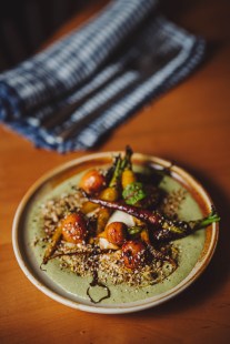 Ici, une ambiance chaleureuse, une cuisine ouverte, des petites assiettes à prix doux garnies d’ingrédients locaux, d’huitres et de pizzas artisanales romaines cuites au four à bois élaborées par l’ultracréatif Mathieu Masson Duceppe.