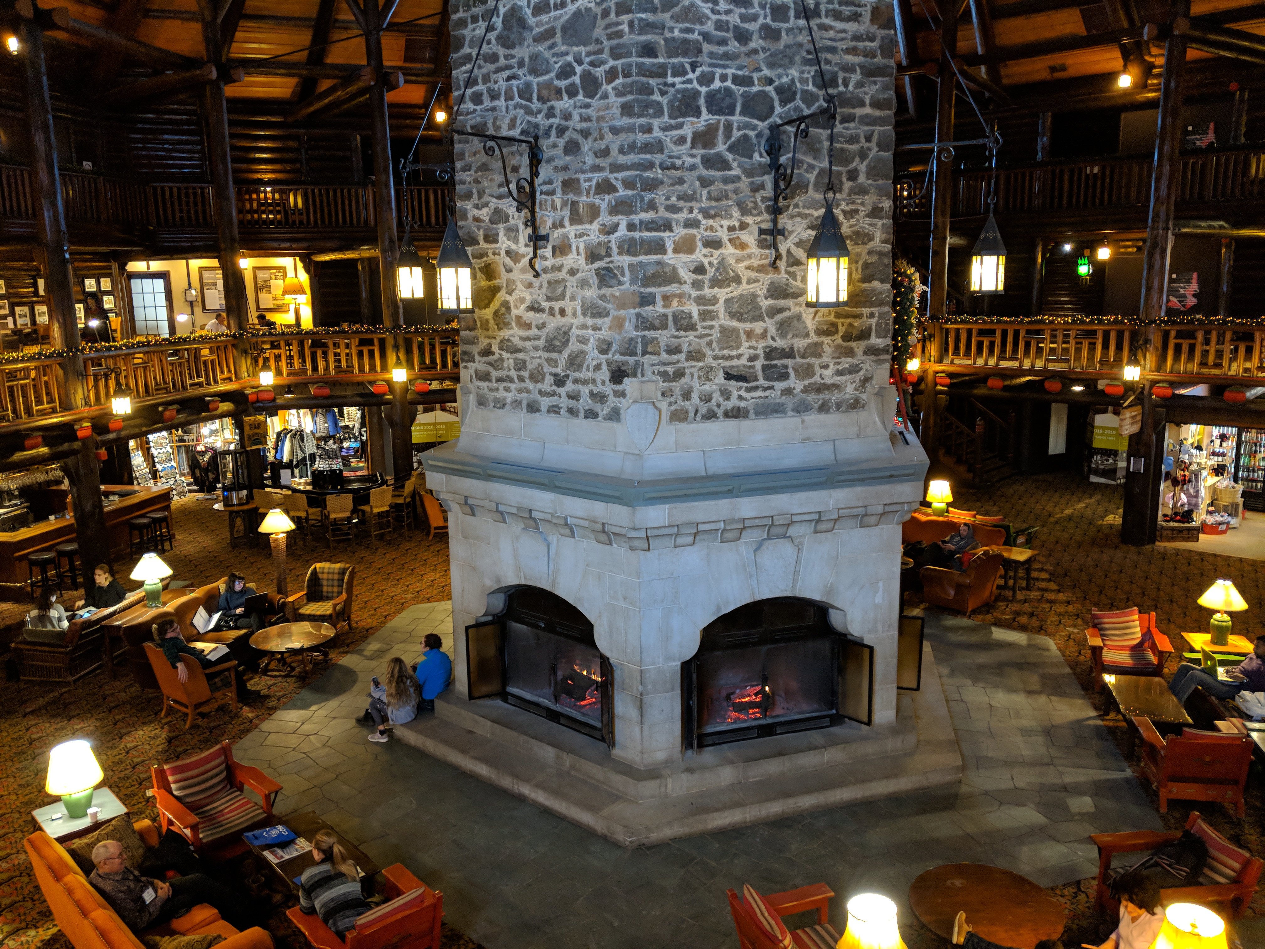 Après avoir passé la journée dehors à faire un tour en traîneau à chiens, en ski de fond ou en patins sur le terrain du Château, on relaxera dans l’accueillant hall autour de l’immense foyer central. L’espace ouvert se veut propice aux rencontres et aux discussions, surtout quand un pianiste s’installe à son instrument pour créer une atmosphère conviviale.