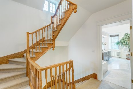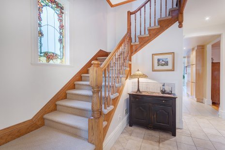 La maison est décrite comme une «véritable oasis de paix et de quiétude» et on comprend pourquoi. À lui seul, l’escalier majestueux à l’entrée donne le ton.