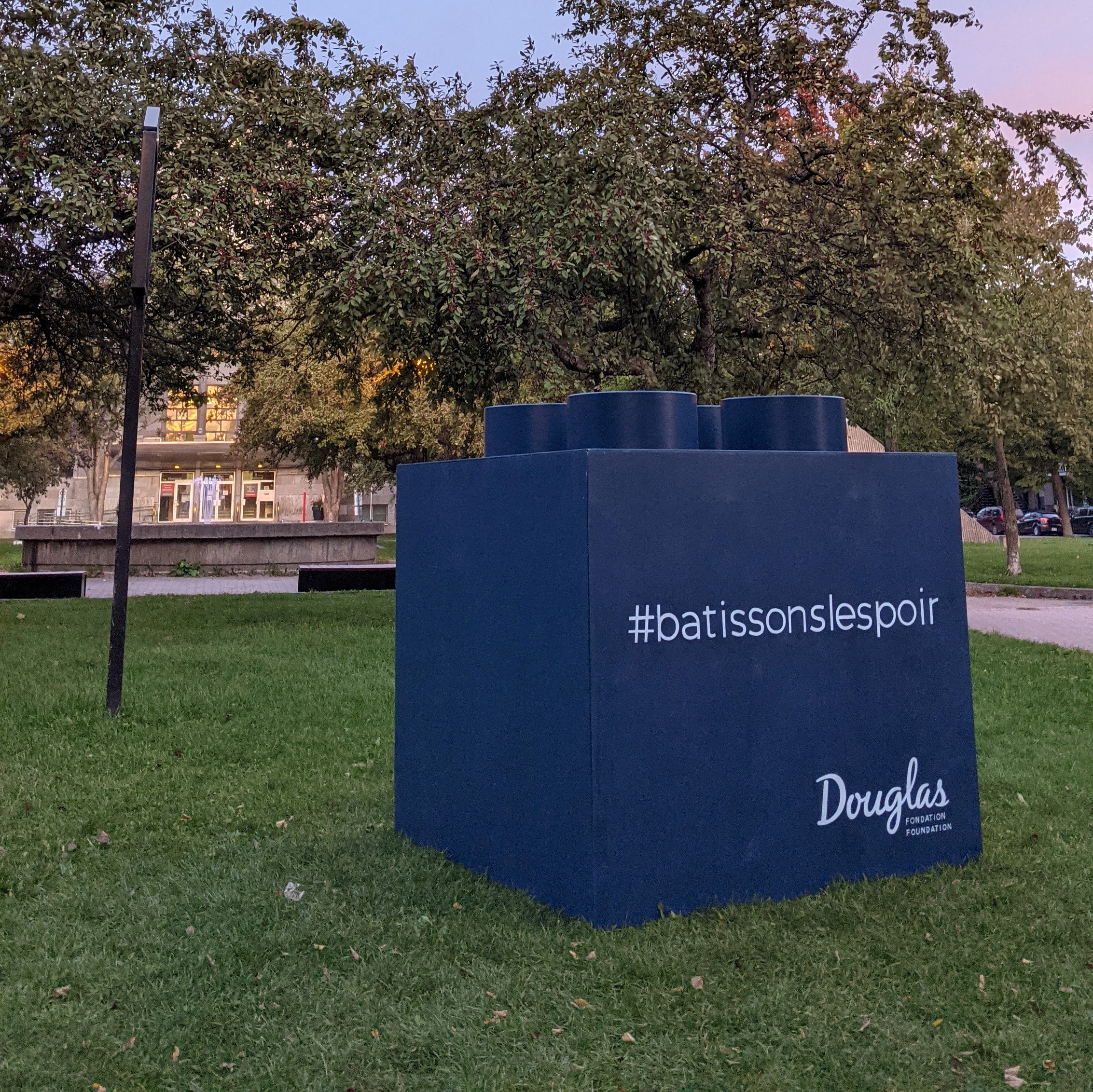 La Fondation Douglas a lancé une nouvelle campagne de financement intitulée Bâtissons l’espoir dans le but de soutenir la recherche en santé mentale, dont les besoins sont de plus en plus criants. La campagne prend la forme de grands blocs de Lego installés ici et là à travers Montréal, notamment en face de la mairie de Verdun.