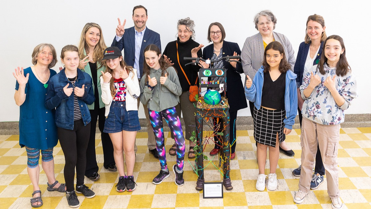 Une Chaise des générations a été offerte à l’Arrondissement d’Ahuntsic-Cartierville par des élèves de l’école primaire Atelier, en collaboration avec le regroupement Mères au front, juste avant le début de la séance du conseil d’arrondissement du 8 mai.