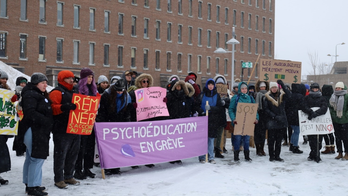 L’Association générale des étudiantes en psychoéducation de l’Université de Montréal (AGÉPEUM) a organisé une manifestation jeudi sur le campus universitaire pour dénoncer les stages non rémunérés.