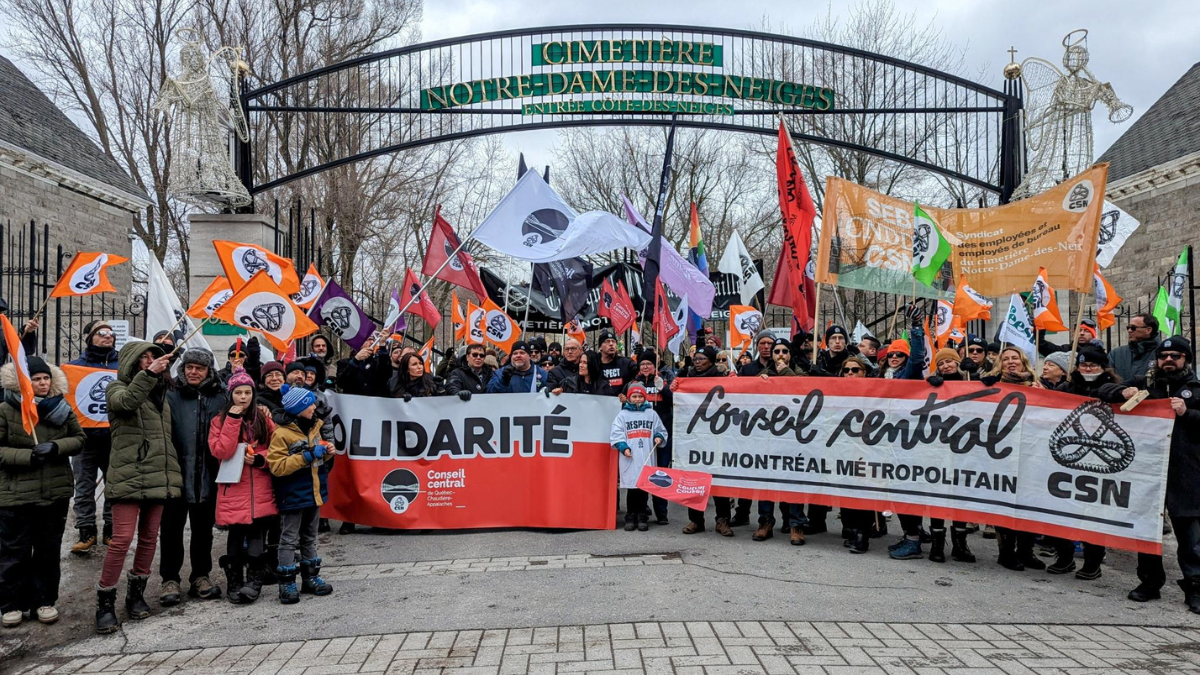 Les employés demandent d’autoriser l’accès au cimetière pour les visiteurs endeuillés. Depuis janvier, l’accès au cimetière est fermé au public, sauf pour quelques exceptions. Il s’agit d’une décision de la direction du cimetière en réaction à la grève générale des employés de terrain qui ont joint celle des employés du bureau entamée en septembre. La situation pénalise inutilement les familles et autres visiteurs, selon Éric Dufault, Président du syndicat des employés de bureau du cimetière Notre-Dame-des-Neiges. «S’ils trouvent que ce n’est pas sécuritaire, qu’ils s’arrangent pour trouver le moyen d’honorer la mémoire des défunts», dénonce-t-il en rappelant que c’est le fait que le terrain ne serait plus sécuritaire pour être visité, par manque d’entretien, que l’employeur le ferme. La direction de cimetière avance toutefois que «les températures printanières devraient, si elles se maintiennent, accélérer la fonte des neiges, et permettre une ouverture prochaine du cimetière pour les familles des défunts».