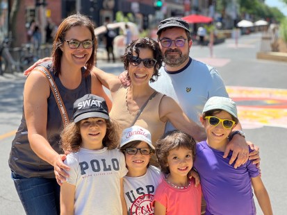 Après avoir habité successivement en France, en Pologne, en Turquie et au Danemark, Anissa et Stéphane Becoulet (arrière à droite) viennent d’emménager à Verdun et retrouvent leur amie Salma Khouri. Les enfants semblent également très heureux de se retrouver sur la Promenade Wellington. On retrouve dans l’ordre: Ilian, Elias, Alya et Miya.