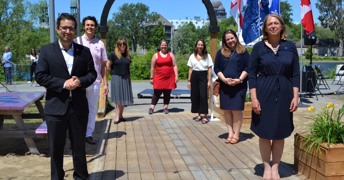 L’administration de Lachine et Robert Beaudry, lors du dévoilement du parc riverain. Photo: Alexandre Sauro/Métro Média