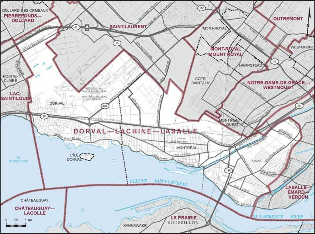 Située au sud de l’île de Montréal et longeant le fleuve Saint-Laurent, la circonscription, qui regroupe la ville de Dorval, l’arrondissement de Lachine et une partie de LaSalle, compte plus de 113 000 habitants, selon le dernier recensement de Statistique Canada, en 2016.