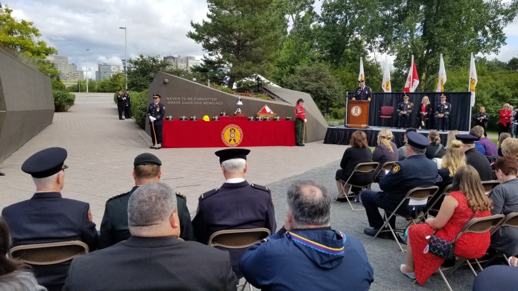 En tout, les noms de 82 pompiers de partout au Canada ont été inscrits, pour un total de 1811 noms sur le monument.
