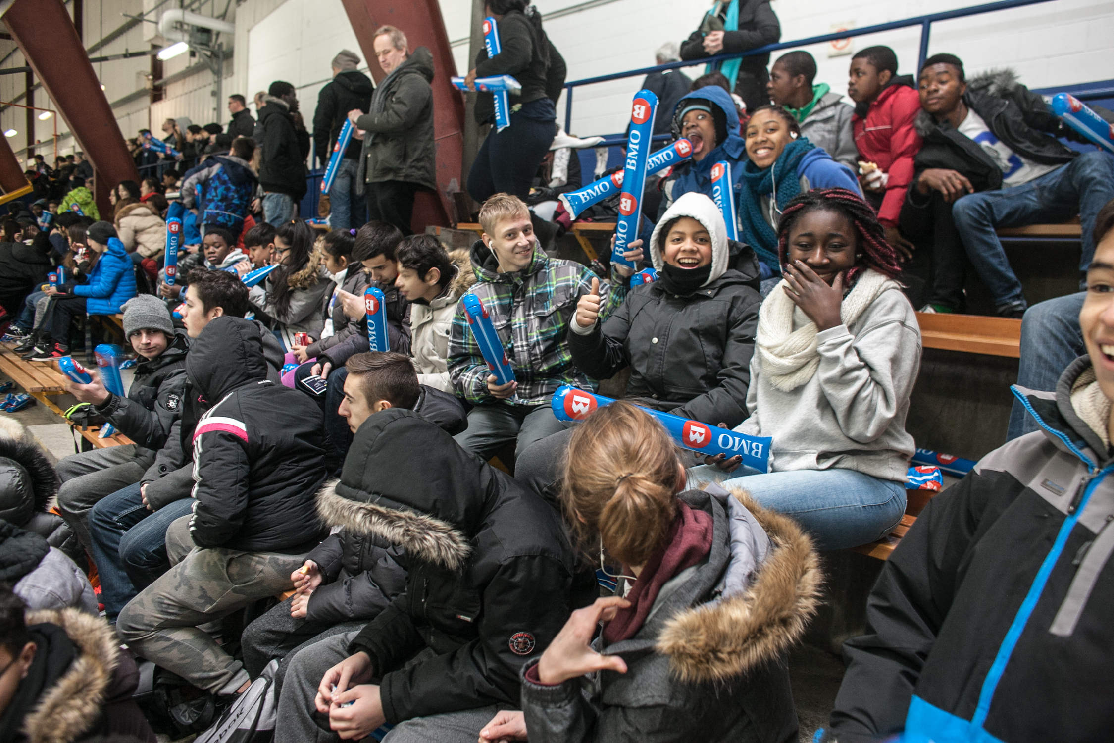 Quelque 400 élèves de l’école secondaire Cavelier-De LaSalle ont envahi le centre sportif Dollard-St-Laurent le 13 janvier, pour assister au match de hockey du Boomerang du cégep André-Laurendeau face aux Nordiques du collège Lionel-Groulx, dans le cadre du programme «L’école, ça compte» qui encourage la persévérance scolaire.