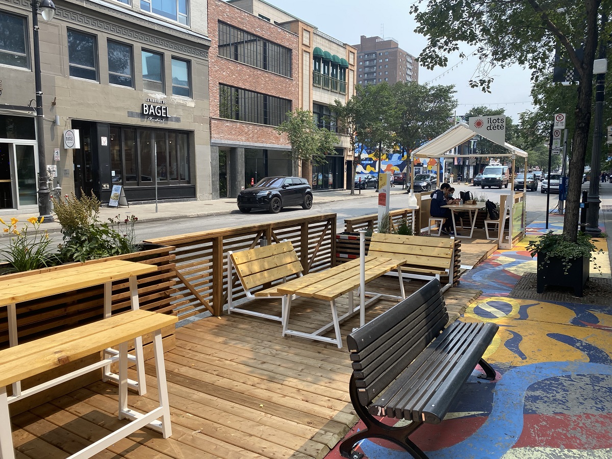Les deux emplacements sur le boulevard Saint-Laurent comptent aussi du mobilier fait sur mesures par la Société de développement commercial du secteur.