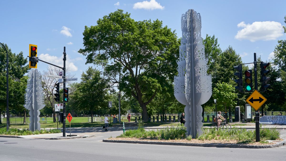 Intitulée «Fontaines», l'œuvre de l'artiste Myriam Dion vise à mettre en valeur l’îlot de fraîcheur dans lequel elle est exposée.