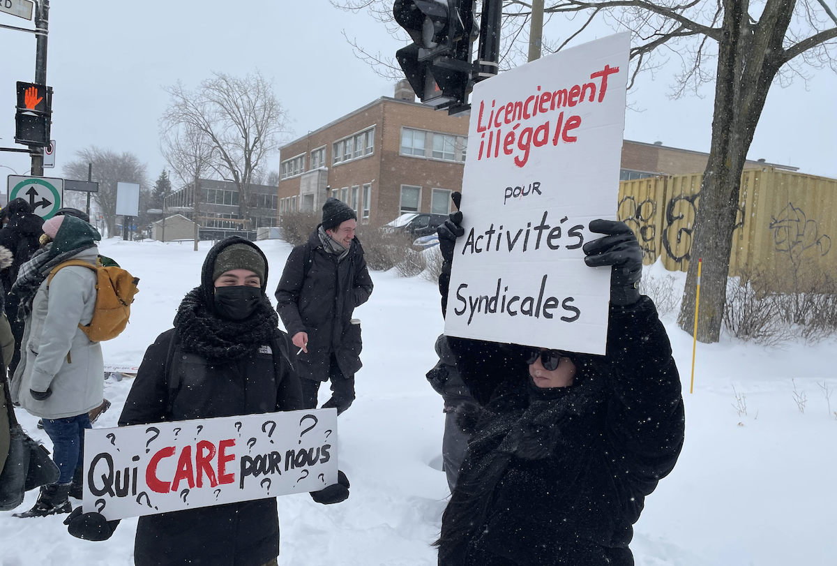 Ni la neige ni les températures glaciales n’ont empêché des employés du refuge pour itinérants CARE Montréal de manifester ce matin pour dénoncer la précarité de leurs conditions de travail et les manœuvres antisyndicales de leur employeur.