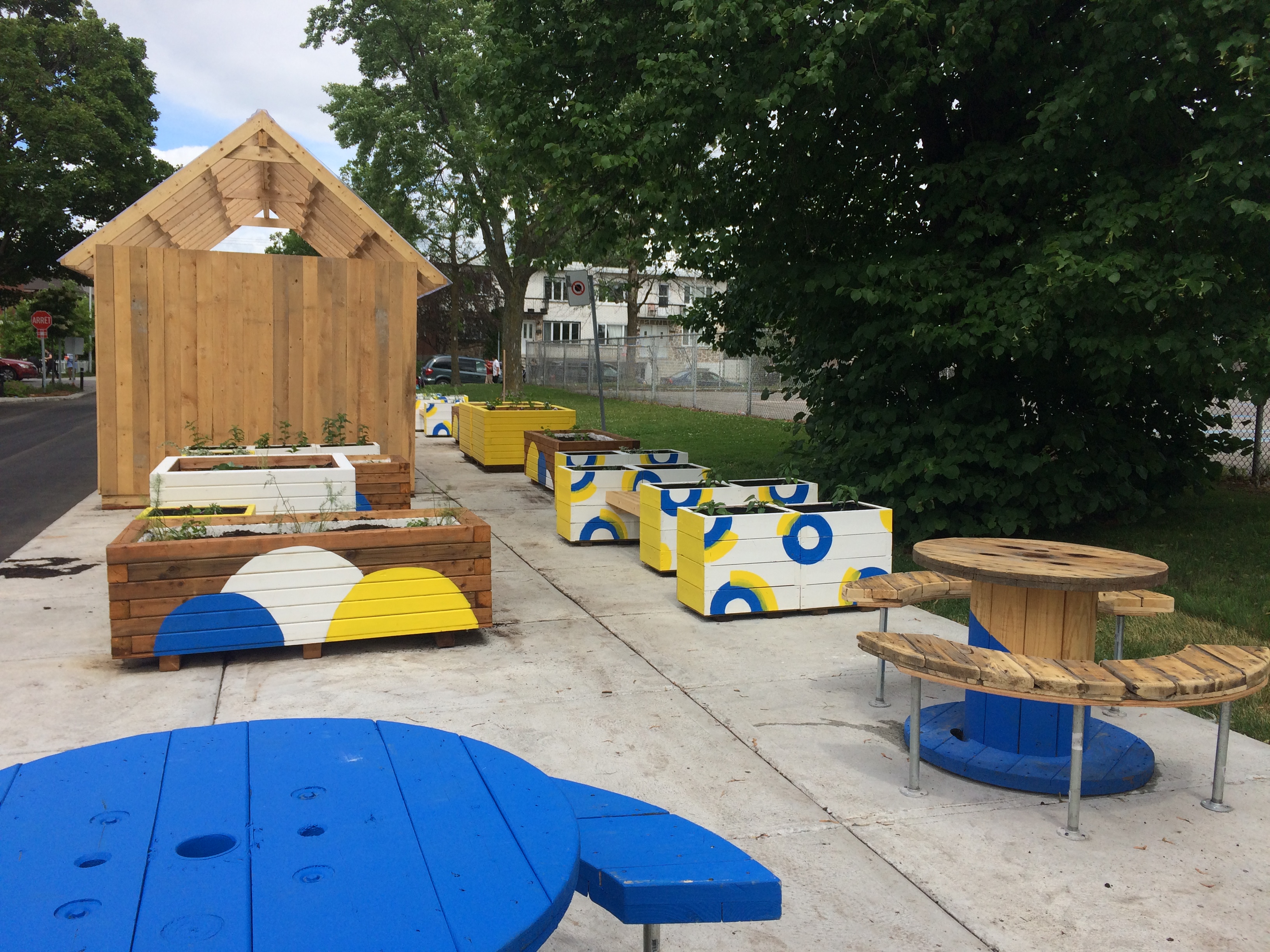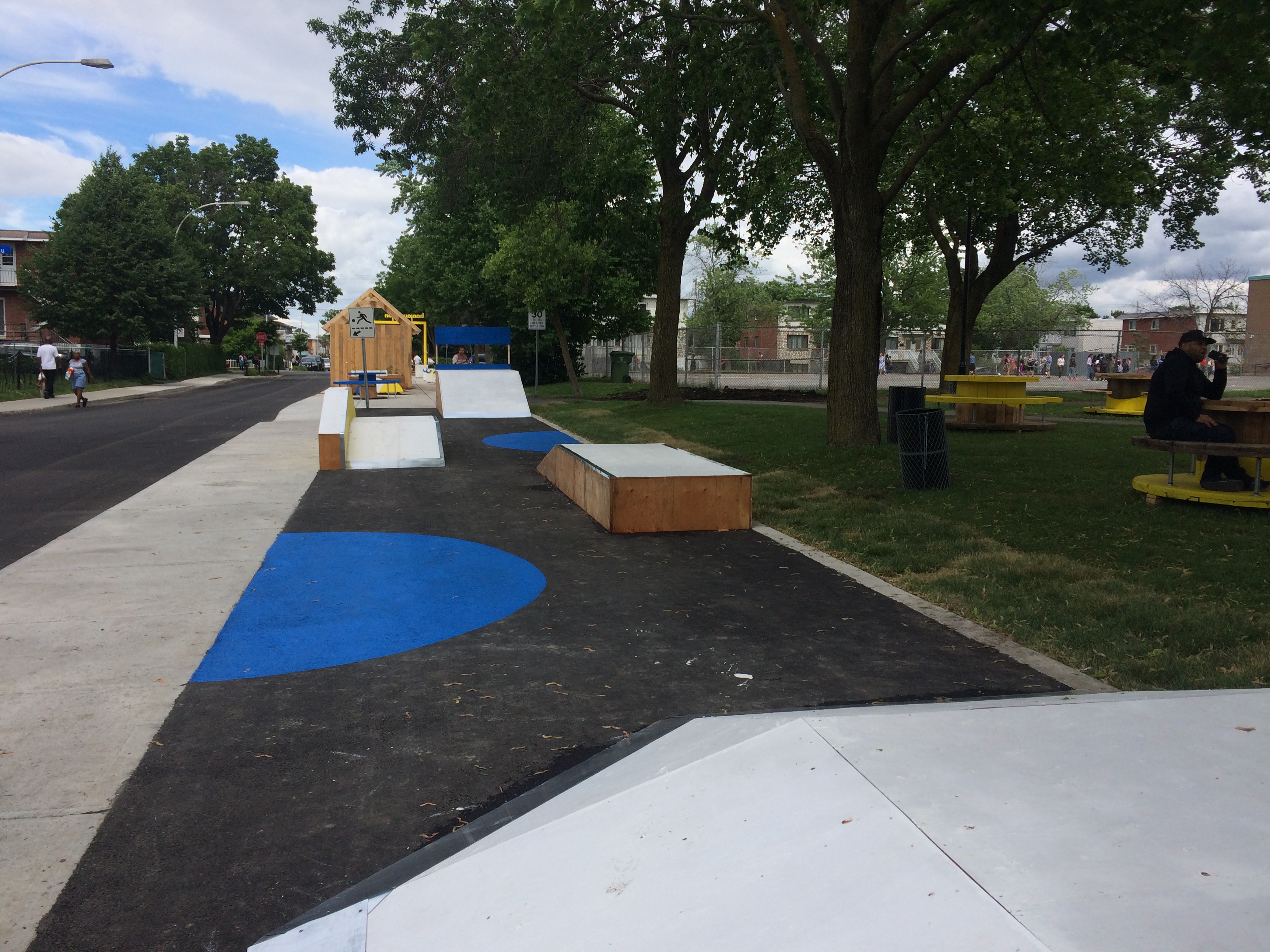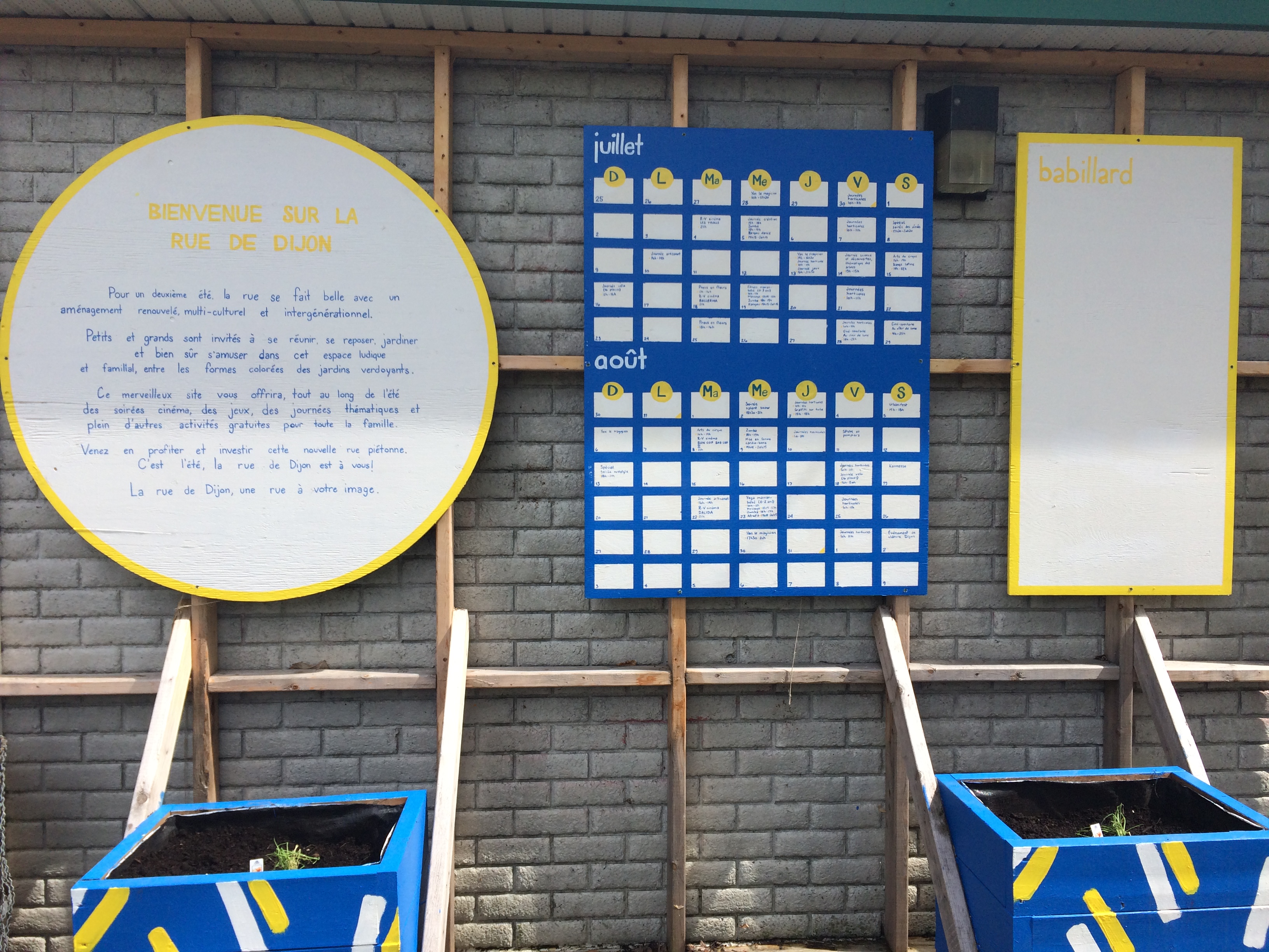 Les installations estivales qui avaient rencontrées du succès, comme la balançoire ou la scène, ont été reprises, d’autres ont été modifiées. Le tronçon aménagé de la rue Dijon qui s’étend désormais de la rue Hurteau au boulevard Rolland, accueille aussi de nouvelles structures comme un potager, un mur d’escalade et un skate parc.