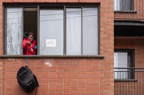 Plusieurs fois par jour, des citoyens venaient chercher leurs diners en bas de l’immeuble de Manon. Plusieurs en profitaient pour avoir une petite conversation, question de briser l’isolement.