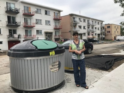 Les poubelles s’accumulent autour des nouveaux bacs semi-enfouis pour les déchets, le recyclage et le compostage de l’avenue Jubinville, en août, au désespoir des résidents.